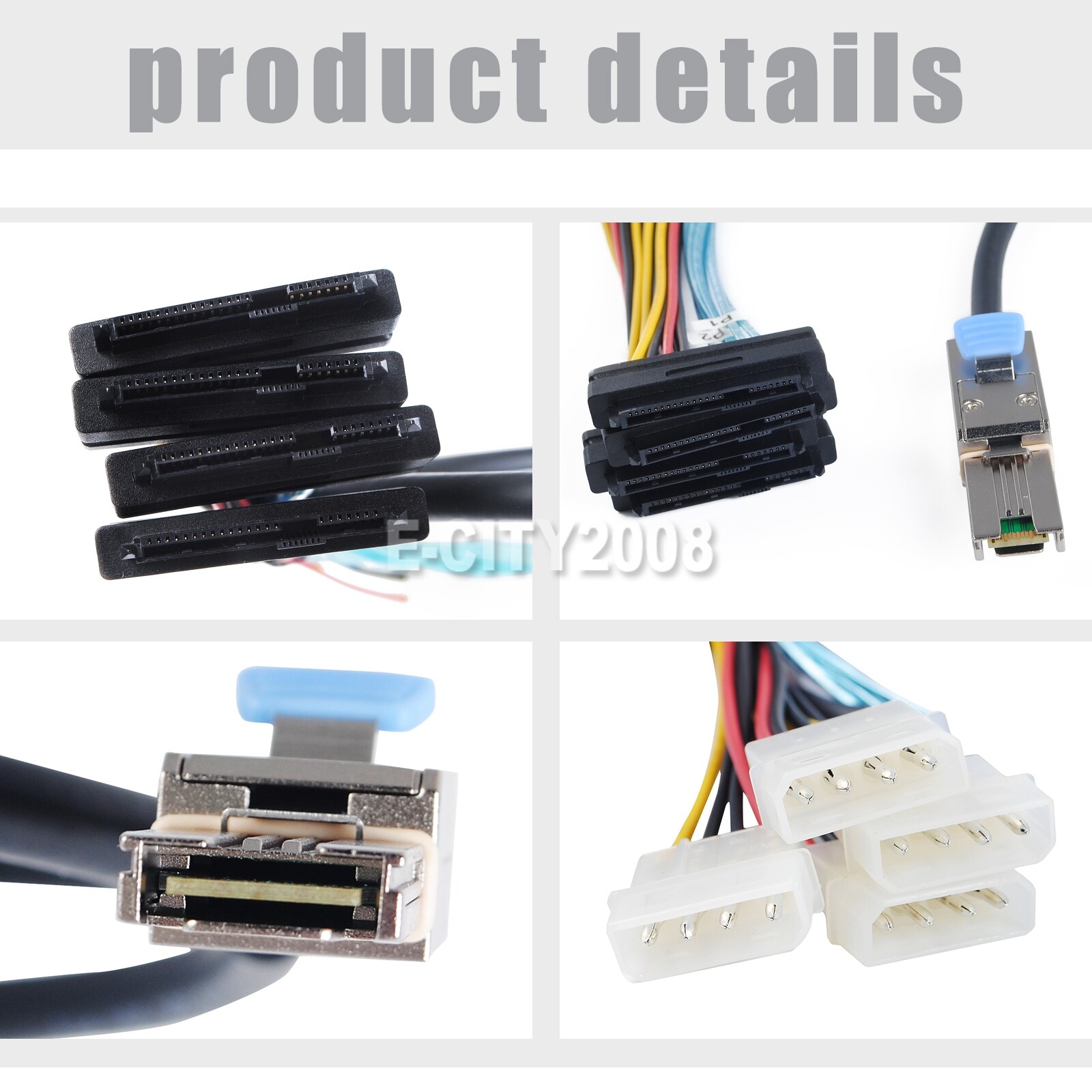 SAS SATA Mini SFF-8088 26pin to 4X SFF-8482 29pin with IDE Power Cable 1m/2m