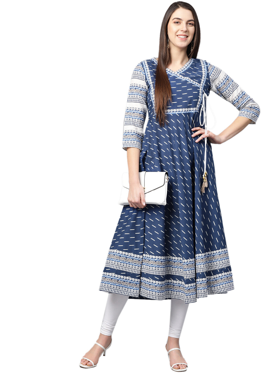 как выглядит YASH GALLERY Womens Rayon Tie Dye Floral Print Anarkali Kurta фото