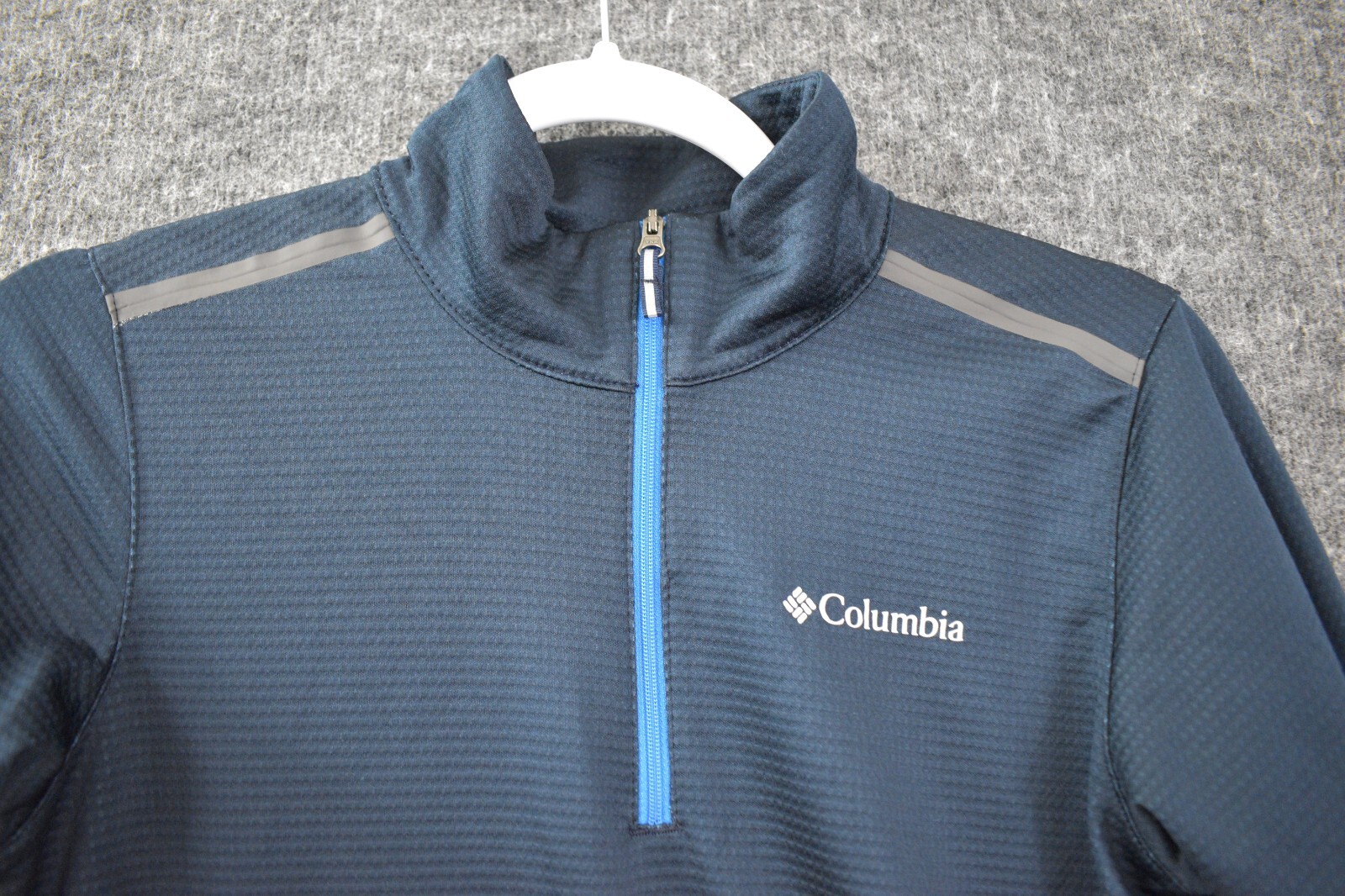 как выглядит Columbia Jacket Boys Youth Large 14-16 34" Chest Blue Spell Out Logo Quarter Zip фото