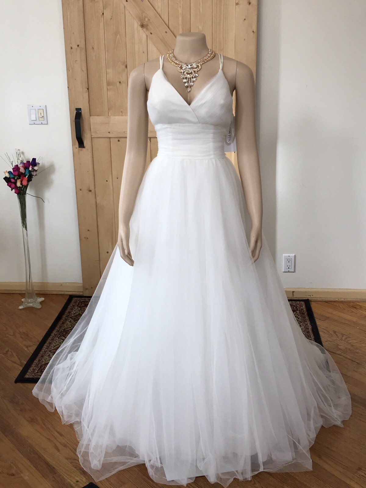 как выглядит David s Bridal Ivory Wedding Dress Size 6 A-Line Empire Waist фото