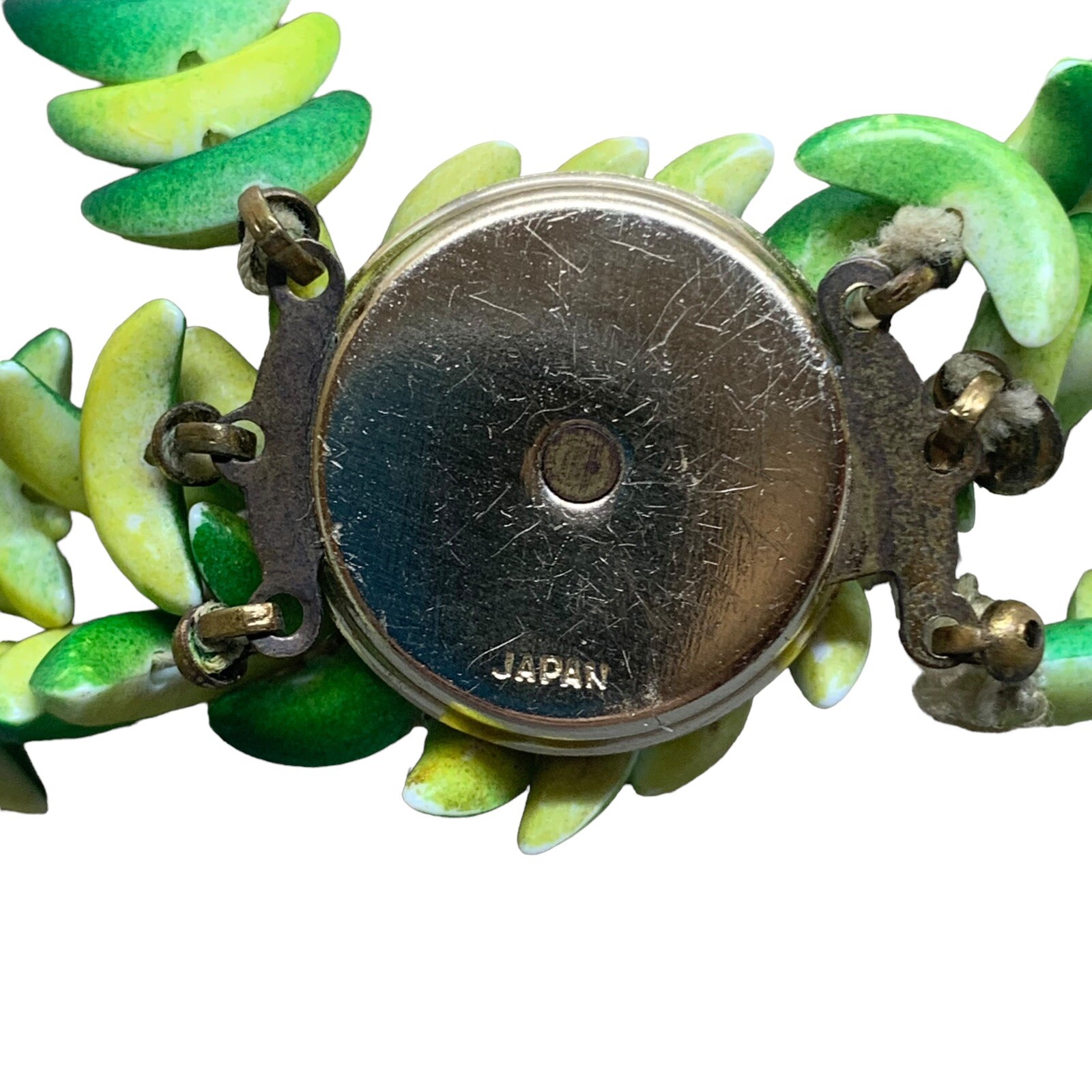 Vintage Tagua Nut 3 Strand Necklace Green/Yellow Made in Japan Boho Tropical