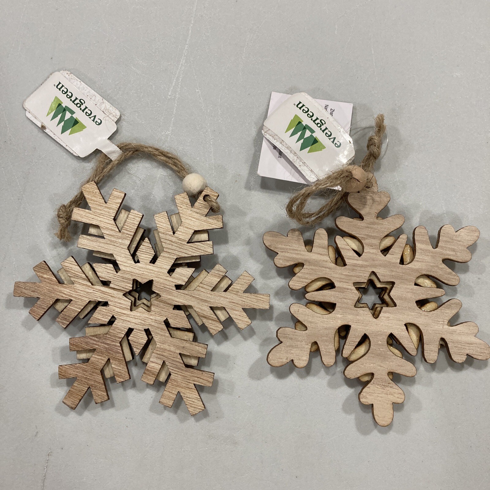Rustic Wooden Snowflake w/ Glitter Christmas Tree Ornament Set of 2 Evergreen