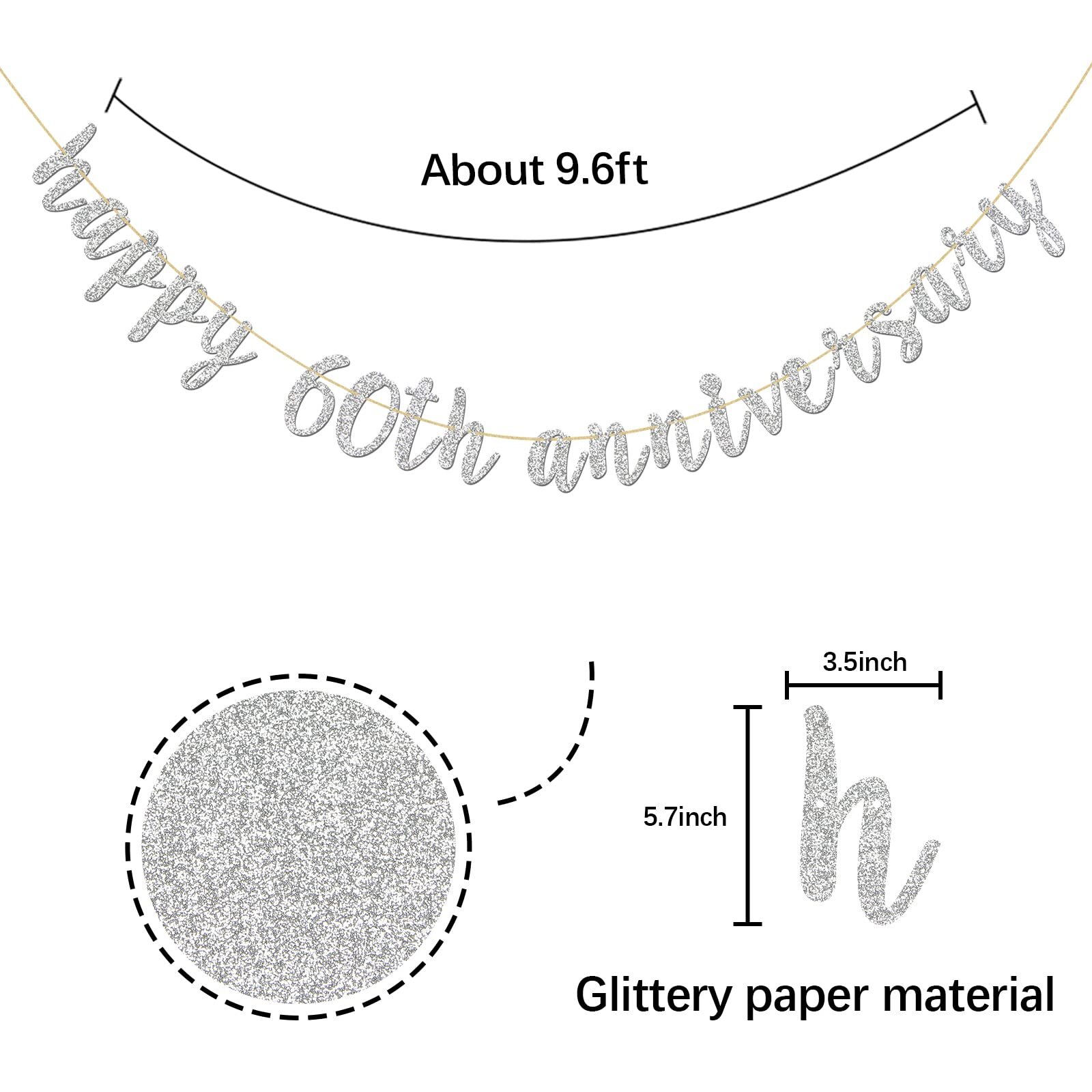 как выглядит Glitter Silver Happy 60th Anniversary Banner - Sixty Sign - 60th Birthday Ban... фото