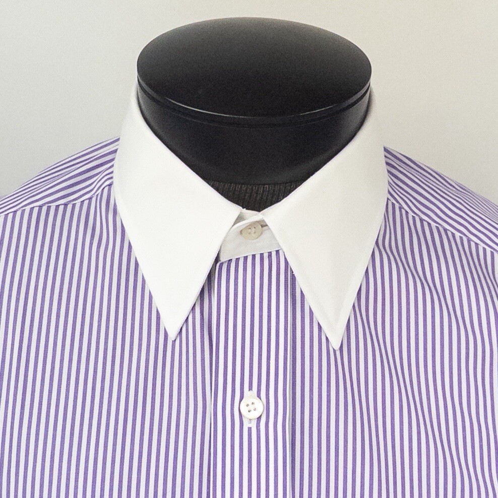 как выглядит Vintage SULKA Purple White Striped Mens Collared Button-down OCT. 1994 BESPOKE фото