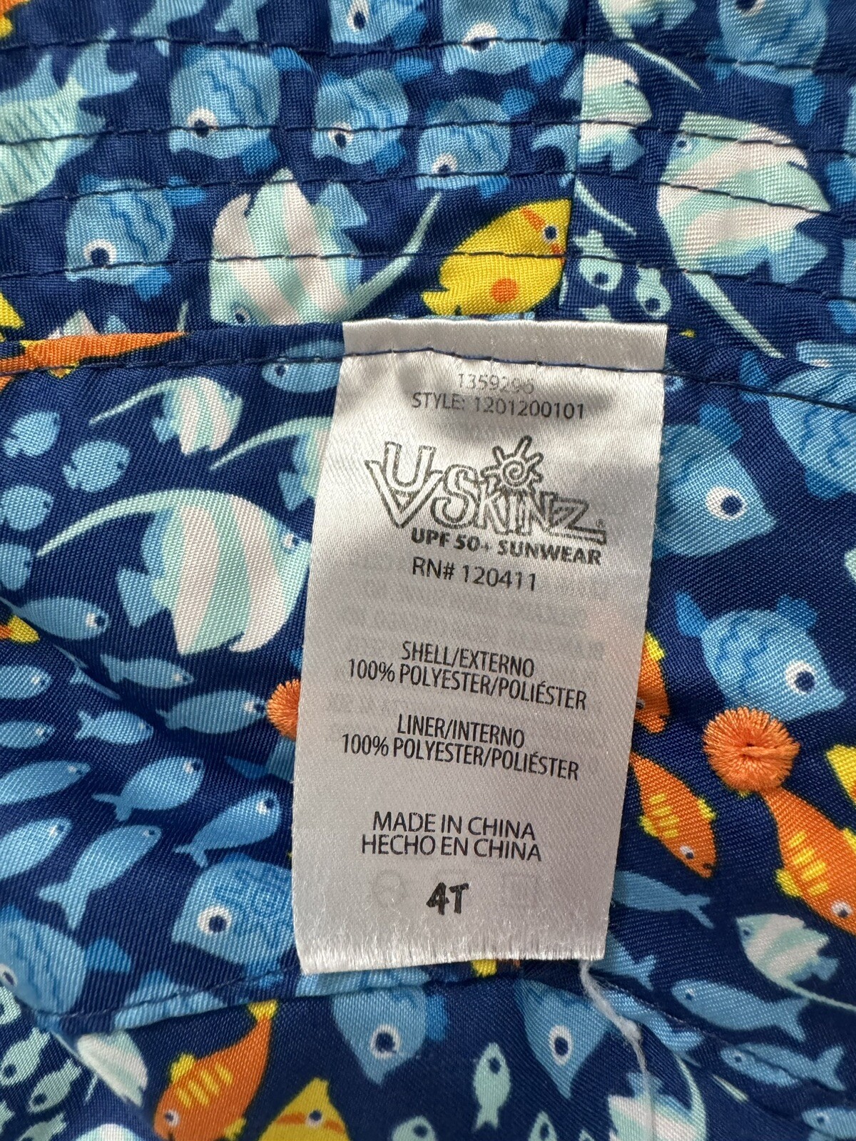 Boys Swim Hat 4T Reversible UVSkins Orange Fish UPF 50 Sunwear