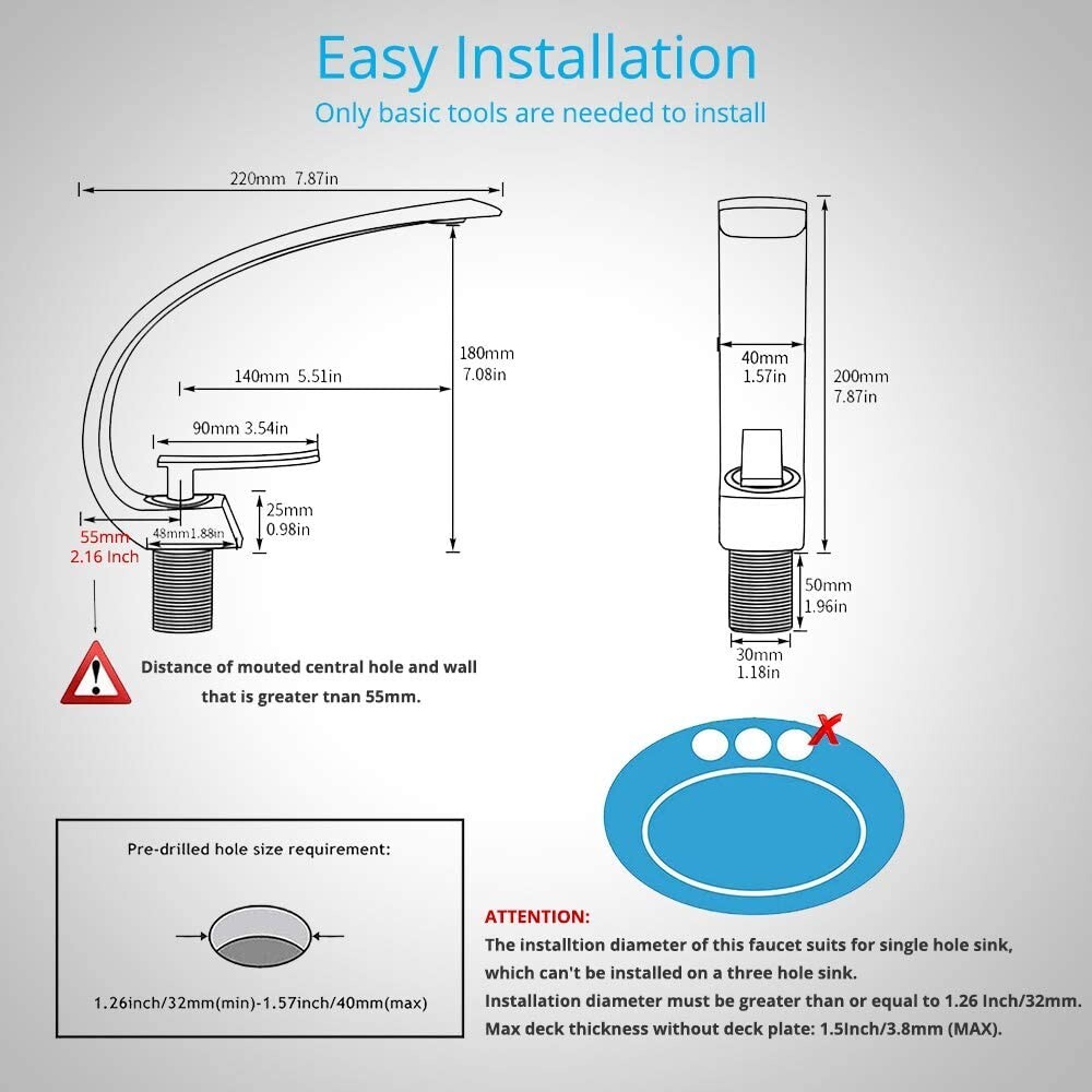 Waterfall Bathroom Faucet Single Handle Sink Vanity Mixer Faucet 1Hole Chrome