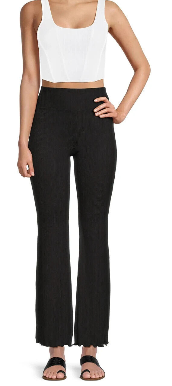 No Boundaries Women's L 11-13 Juniors Ribbed Flare Lettuce Hem Pants Black