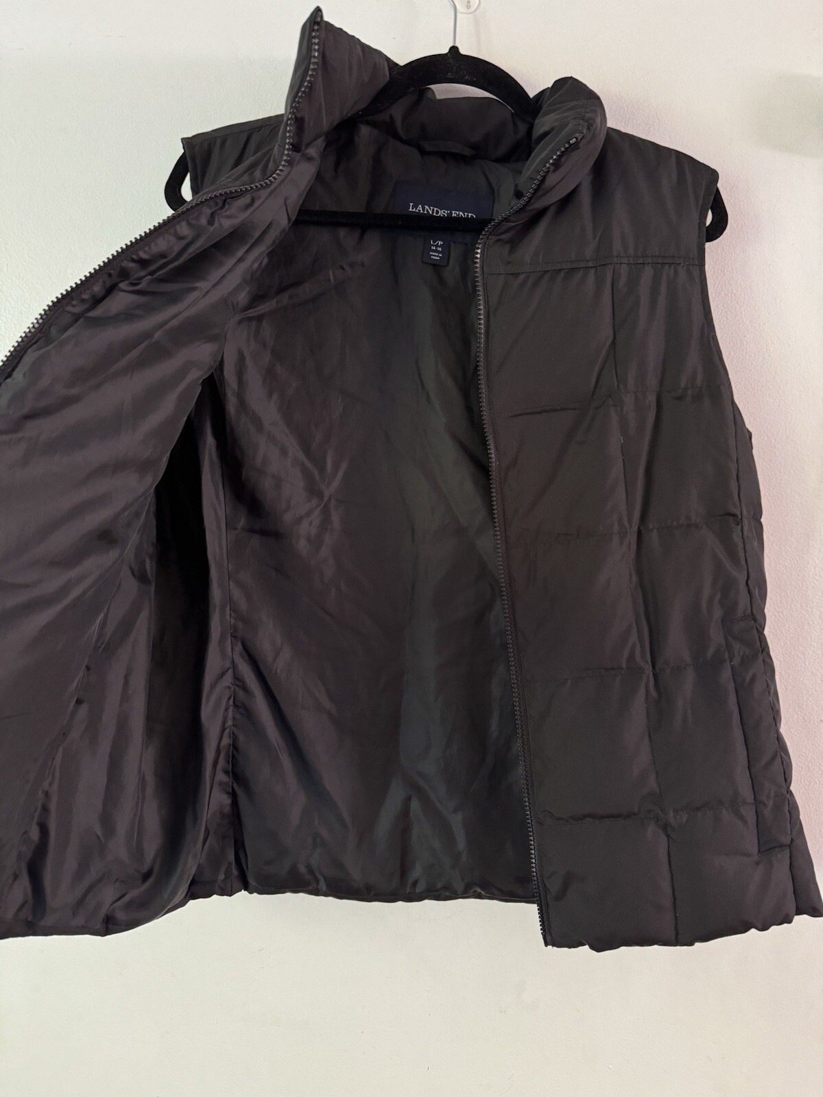 как выглядит Lands End Quilted Black Down Filled Full Zip Jacket Vest Womens Sz Large 14/16 фото