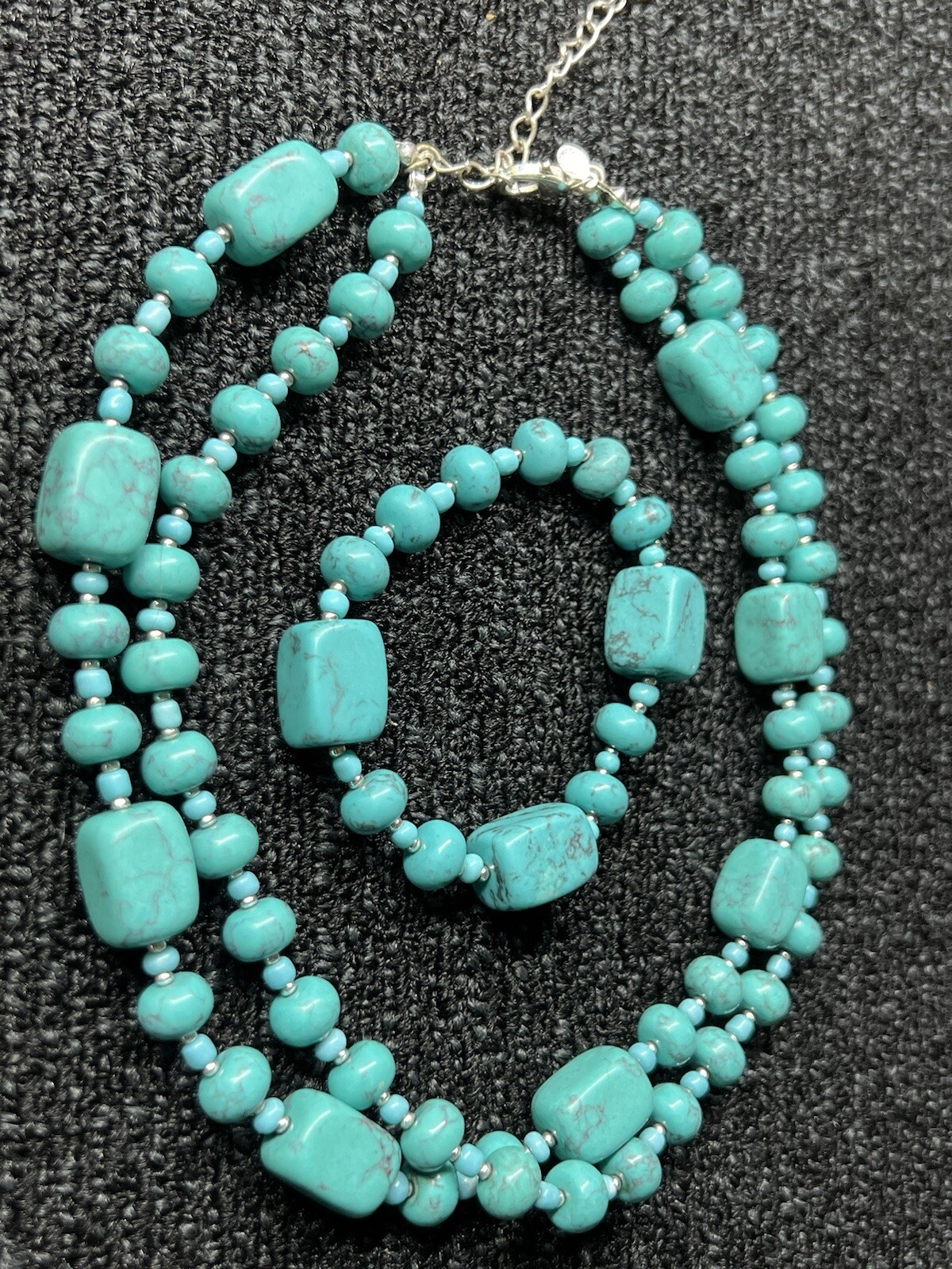 как выглядит Natural Blue Turquoise Beads Women s Set Necklace And Bracelet Squares фото