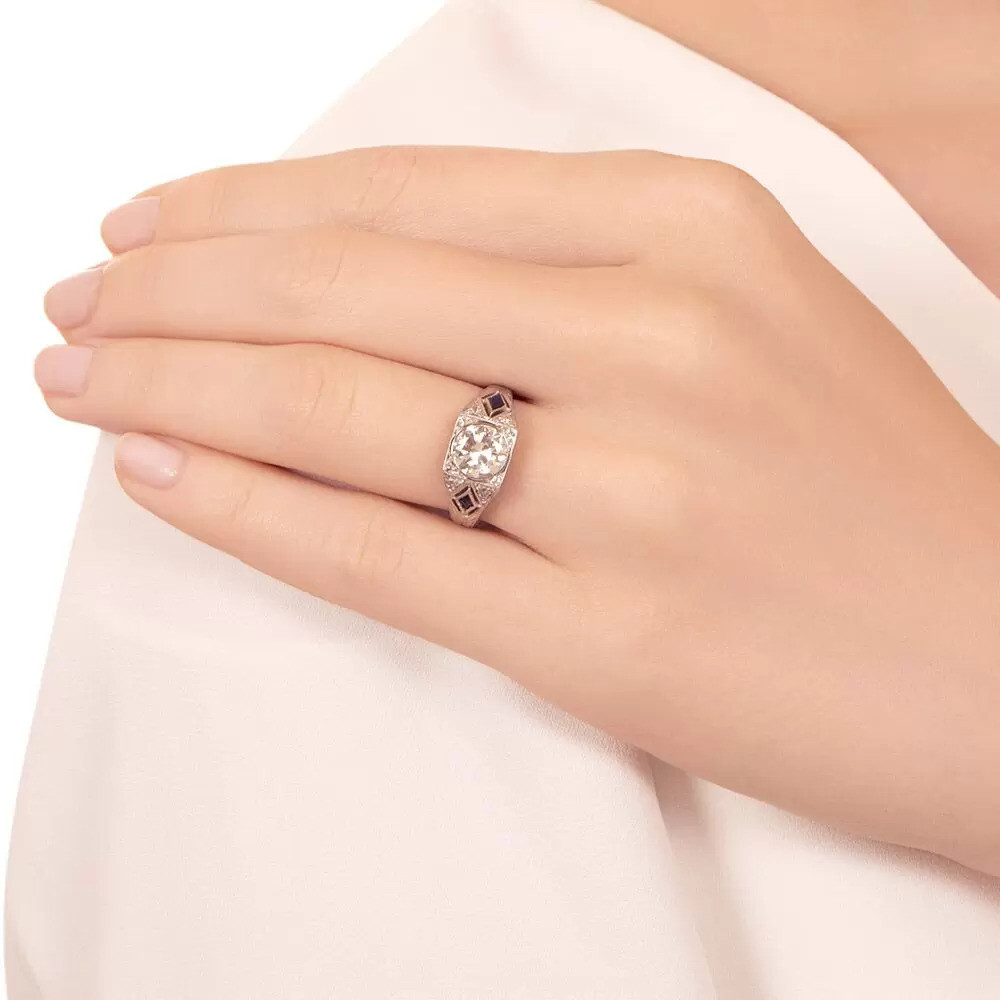 как выглядит 1.32Ct White Round Cut CZ Antique Style Art Deco Engagement Ring In 925 Silver фото