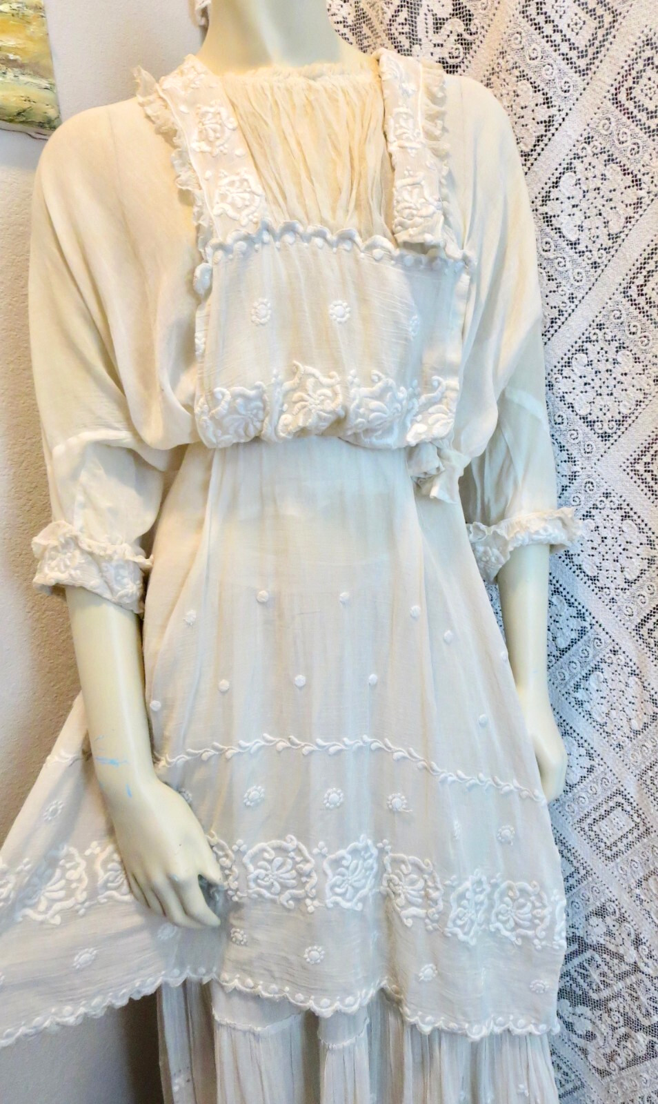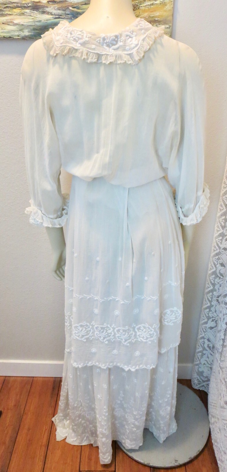 Edwardian 2 pc Dress 1900s White Embroidered Lace Trimmed Gown 25 Waist