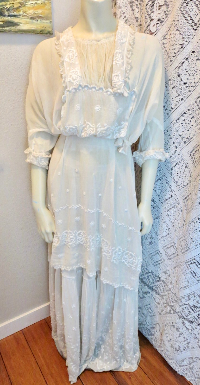 как выглядит Edwardian 2 pc Dress 1900s White Embroidered Lace Trimmed Gown 25 Waist фото