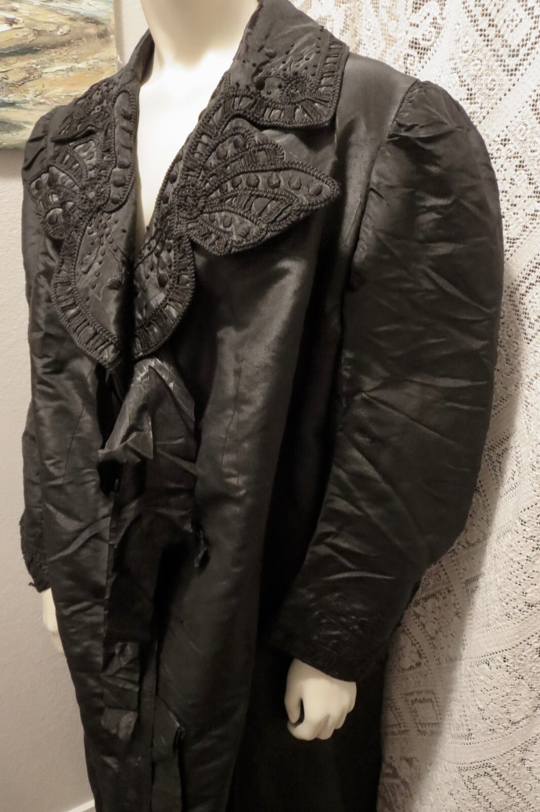 как выглядит Antique 1800s Victorian RARE Silk Womens Coat Beautiful Embroidery Hand Work фото