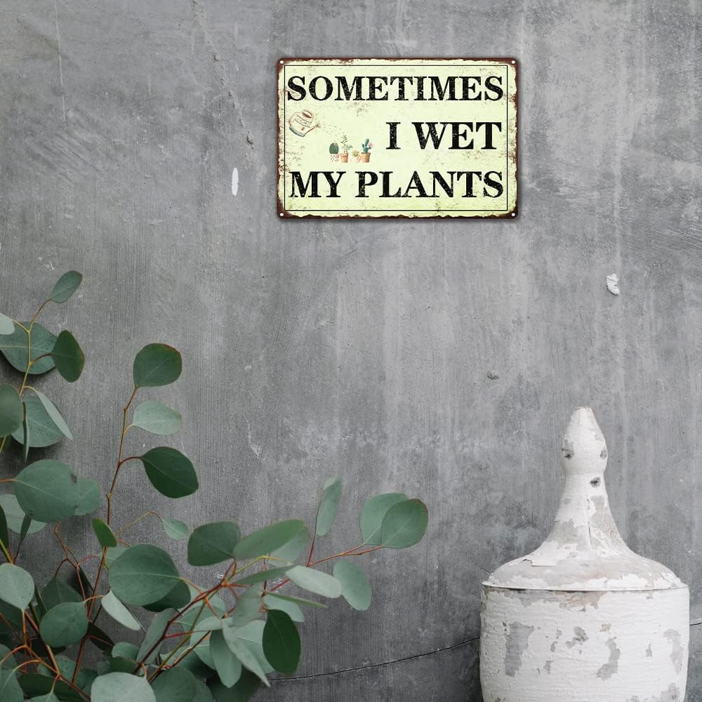 как выглядит Funny Garden Decor Sometimes I Wet My Plants Sign Garden Metal Signs outside Gar фото