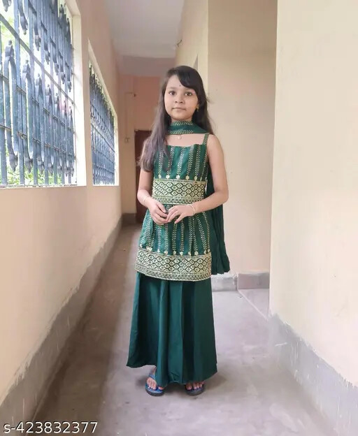 Indian Traditional Kids embroidery worked beautiful baby girl kurta set
