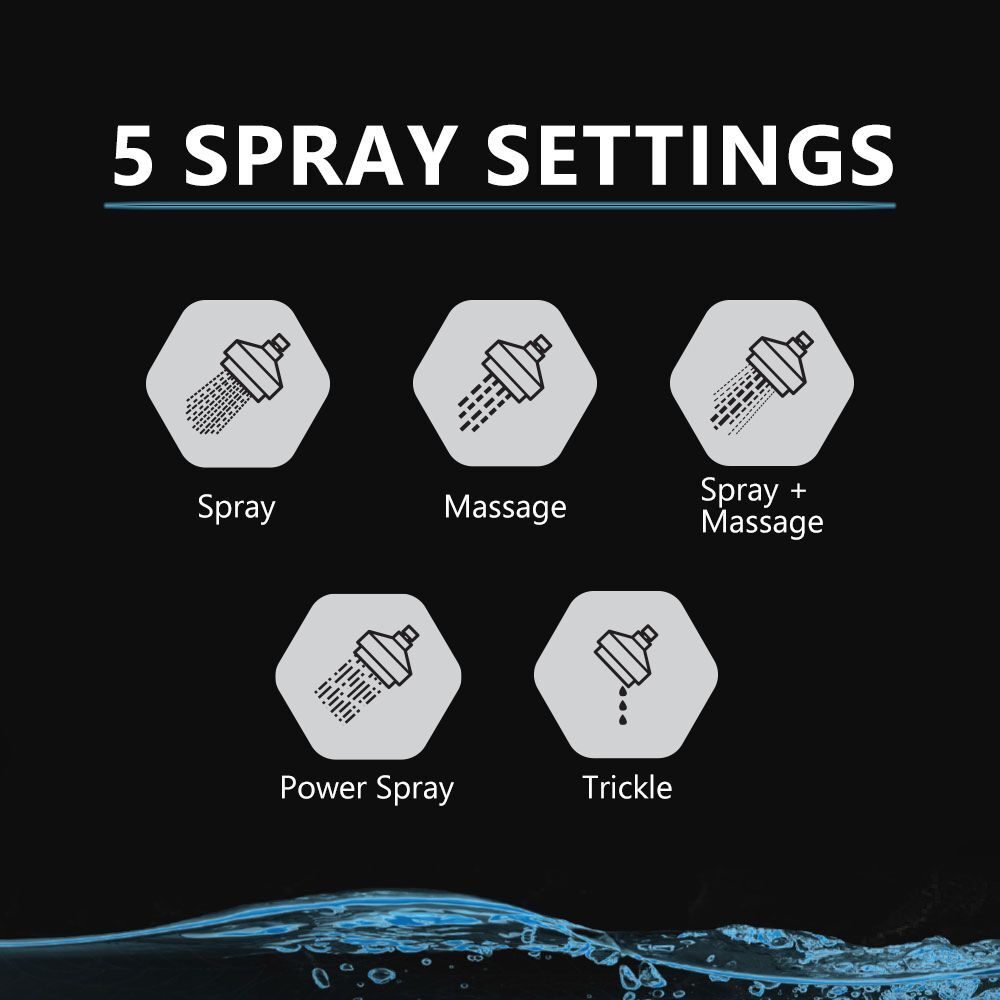 5 Pattern Multi-Function Massage Wall Mount Fixed Shower Head Brushed Nickel