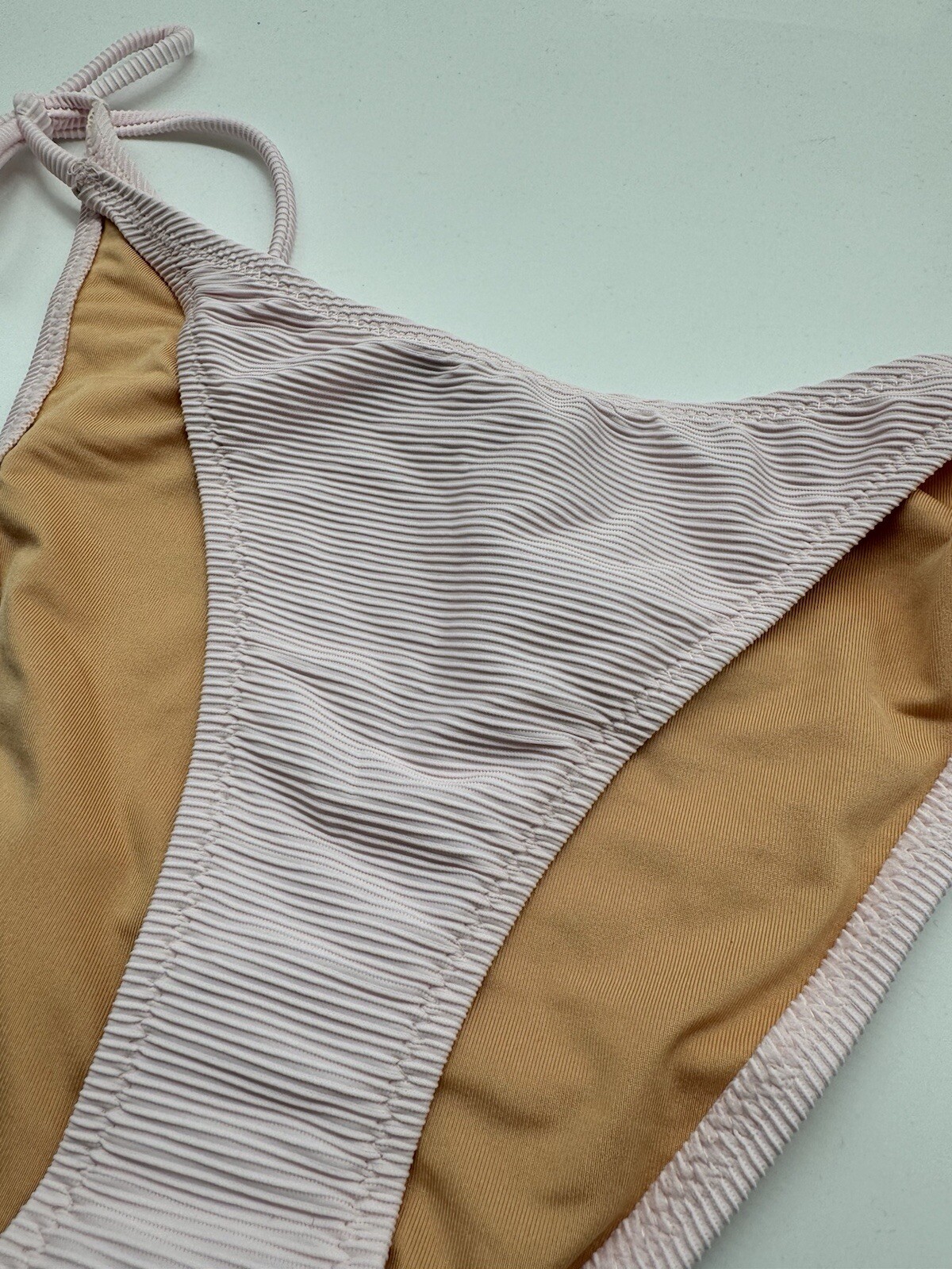 J. Crew Pastel Pink Curved Waist Cheeky String Bikini Bottom Size Medium NEW