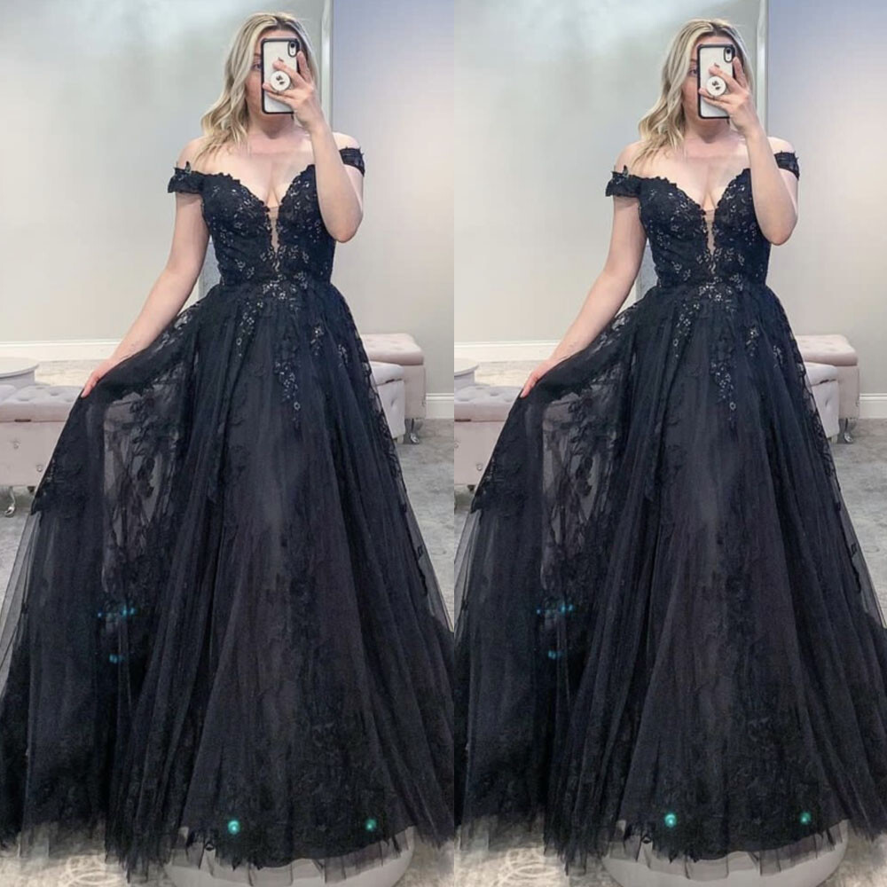 как выглядит Gothic Black Wedding Dresses Off Shoulder Sleeveless Lace Appliques Bridal Gowns фото