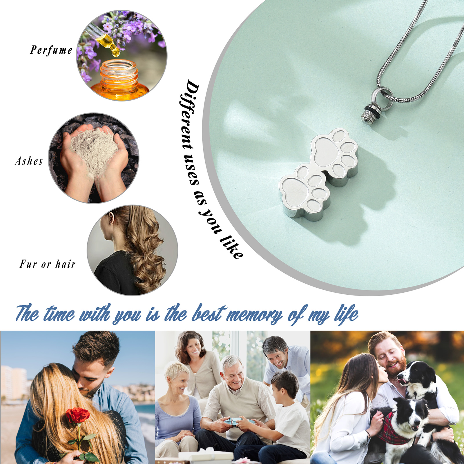 Pet Cremation Jewelry for Ashes Urn Necklace Paw Print Ash Urn Necklace Pendants