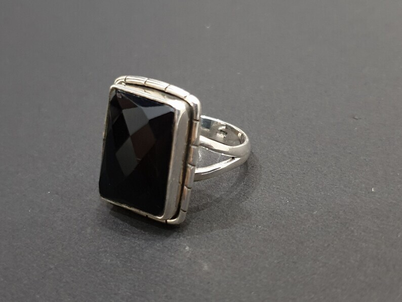 как выглядит Solid 925 Sterling Silver Rectangle Black Onyx Womens Ring Natural Gemstone фото