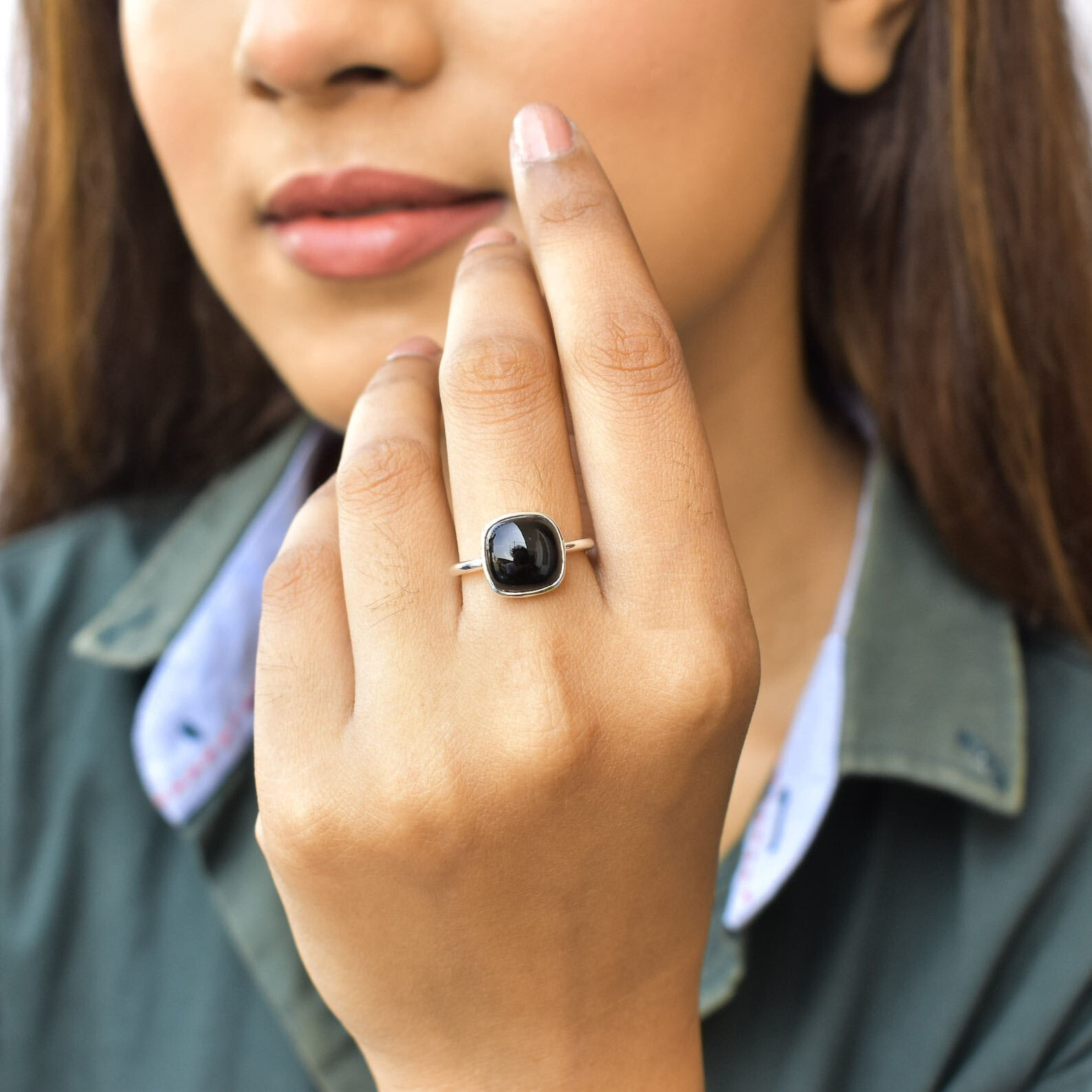 как выглядит Natural Black Onyx Cushion Shape Fine Solid 925 Sterling Silver Statement Ring фото