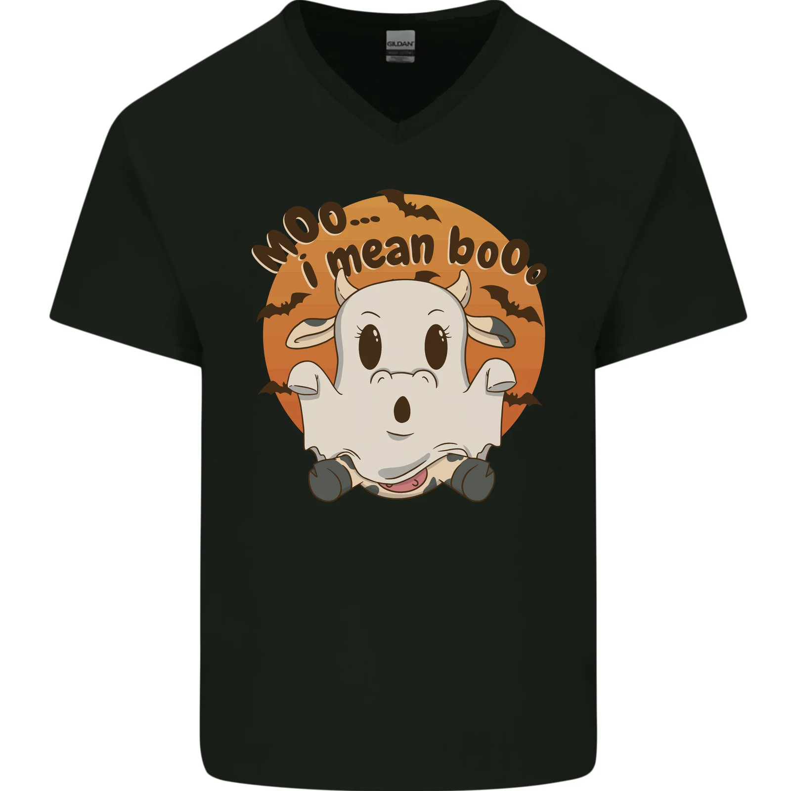 Moo I Mean Boo Funny Cow Halloween Mens V-Neck Cotton T-Shirt