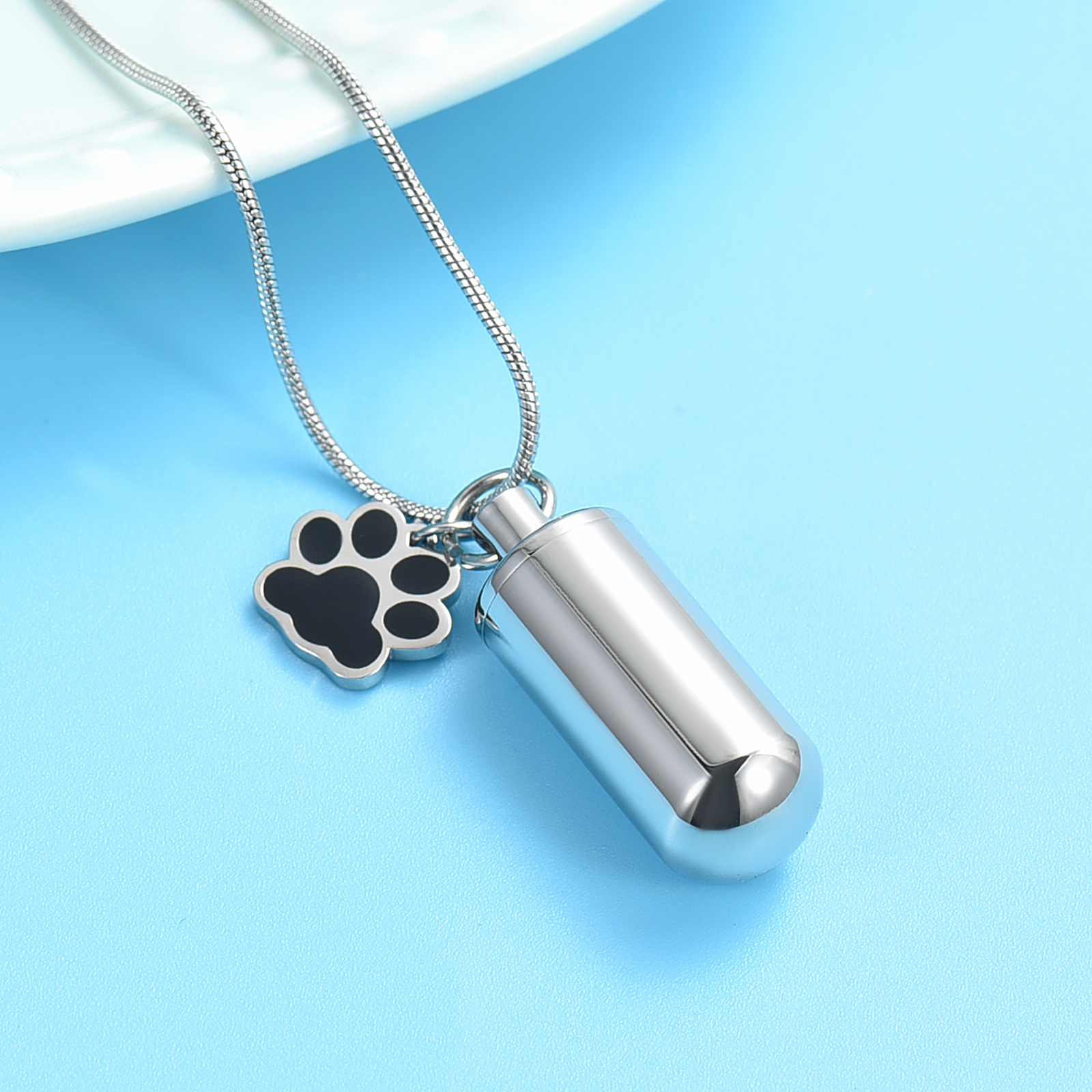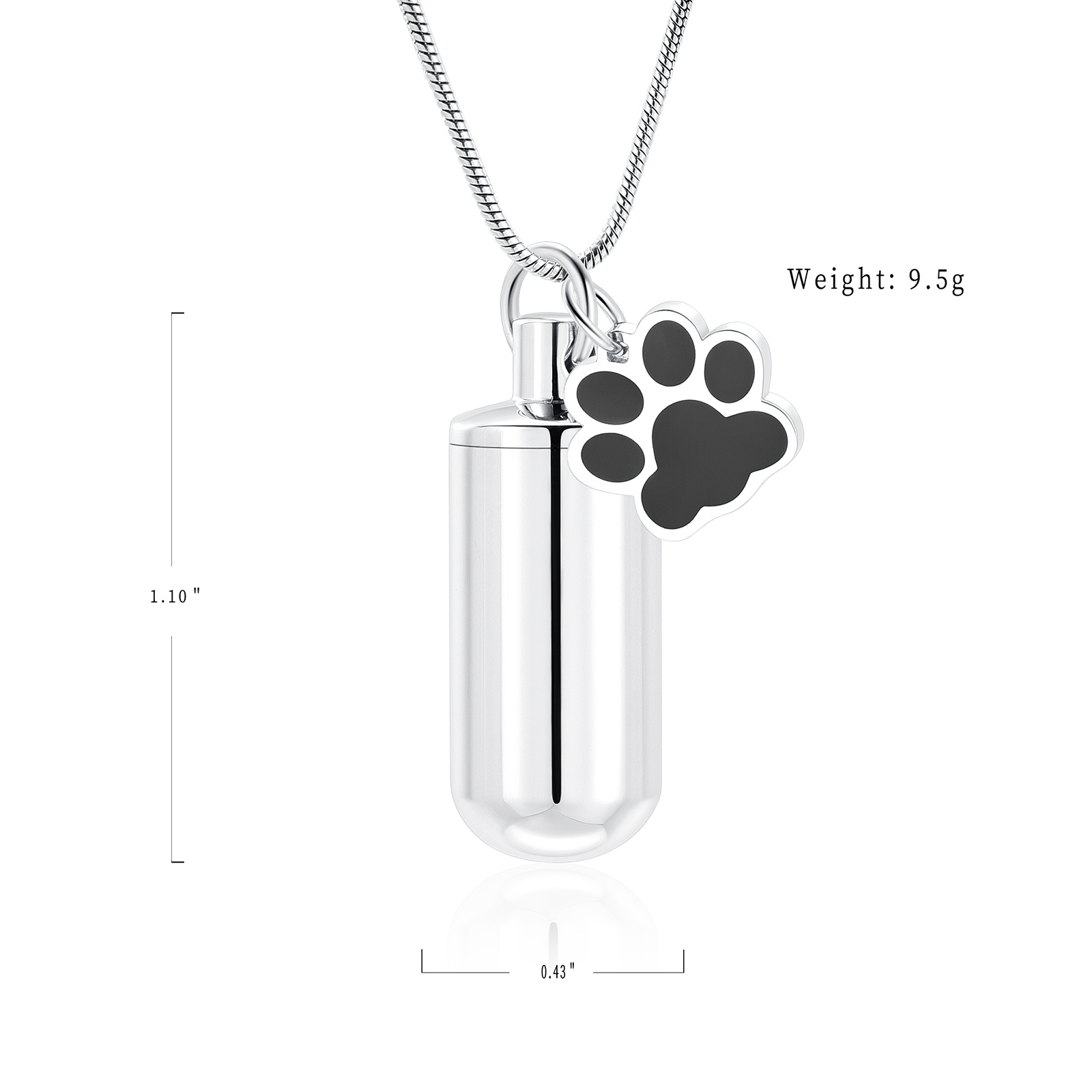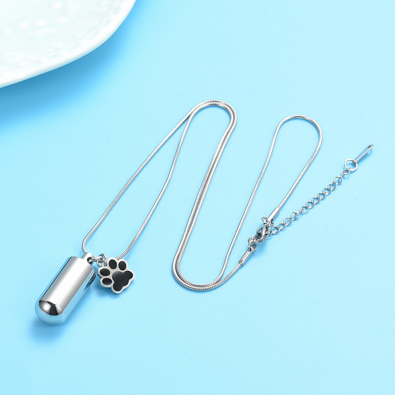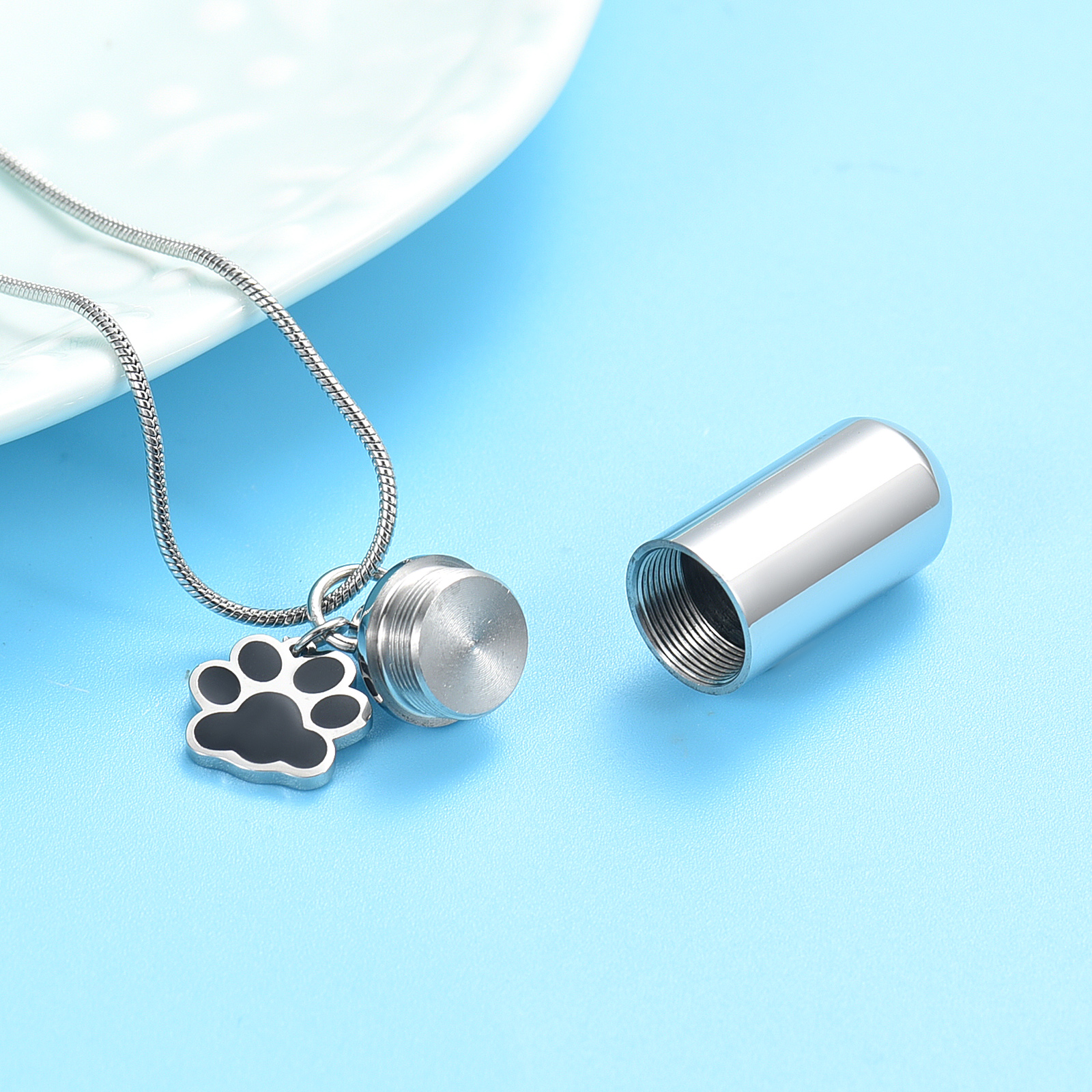 Pet Urn Necklace for Ashes Paw Print Ashes Pet Cylinder Cremation Urn Necklaces