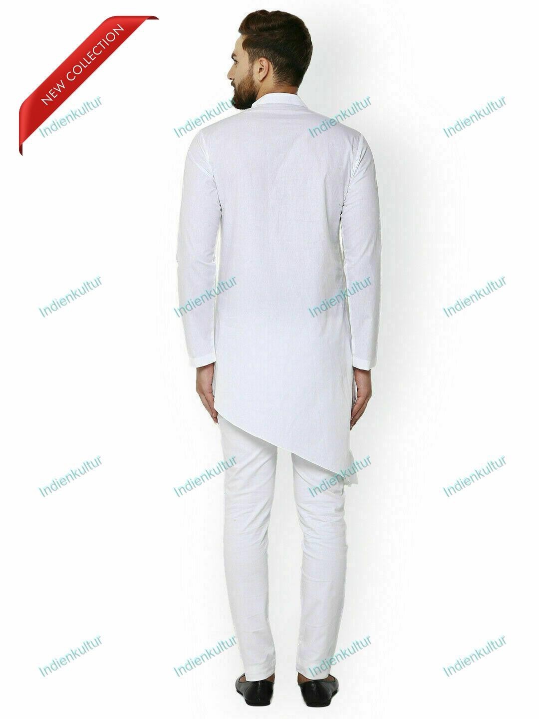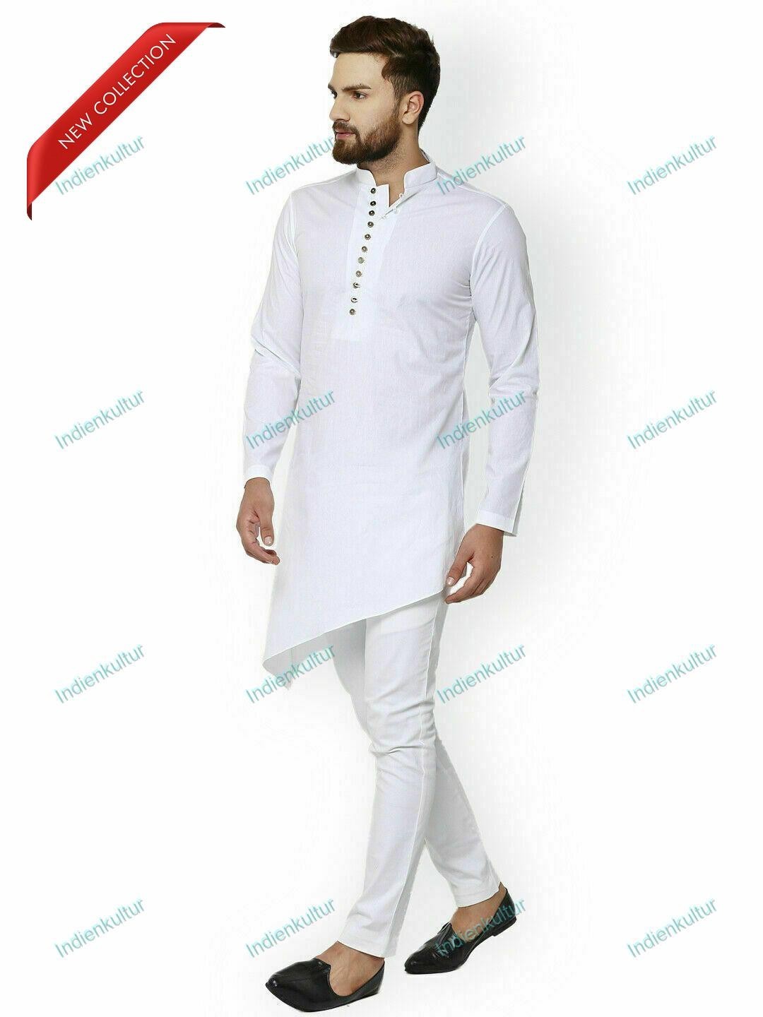 Mens Cotton Long Kurta White Top Tonic Indian Traditional Party Dress Kurta