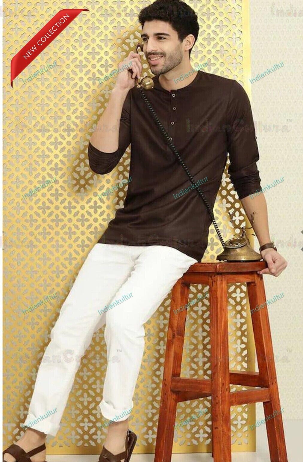 Mens Kurta Clothing Fashion Shirt Mens Short Kurta Cotton India Dress Kurta