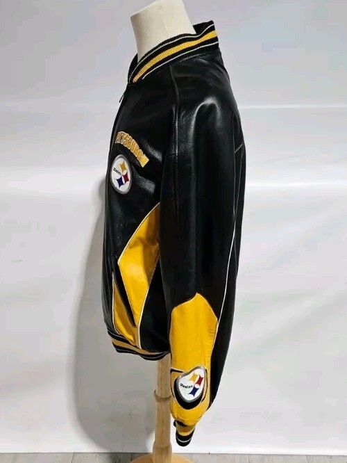 как выглядит Carl Banks brand Pittsburgh Steelers leather jacket. Size large. фото