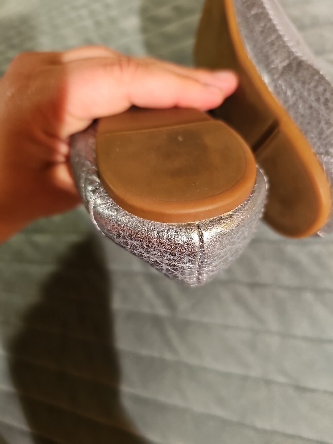 как выглядит Coach Dora Ballet Flat Lt Silver Metallic Pebbled Leather Logo Elastic Edge фото
