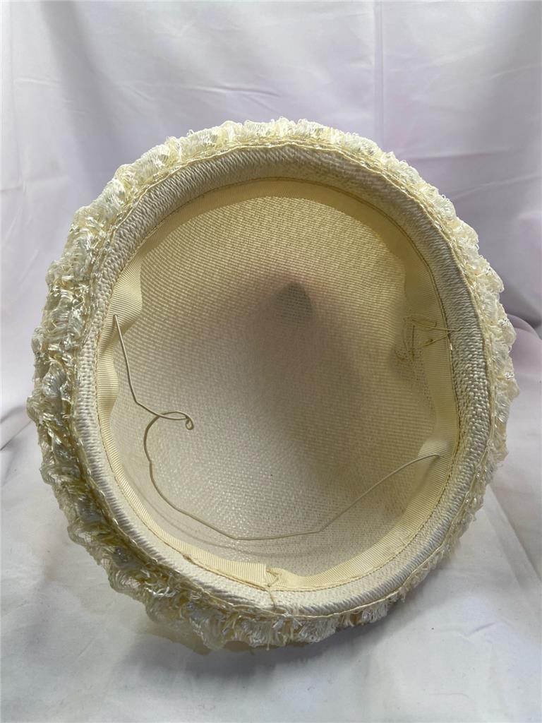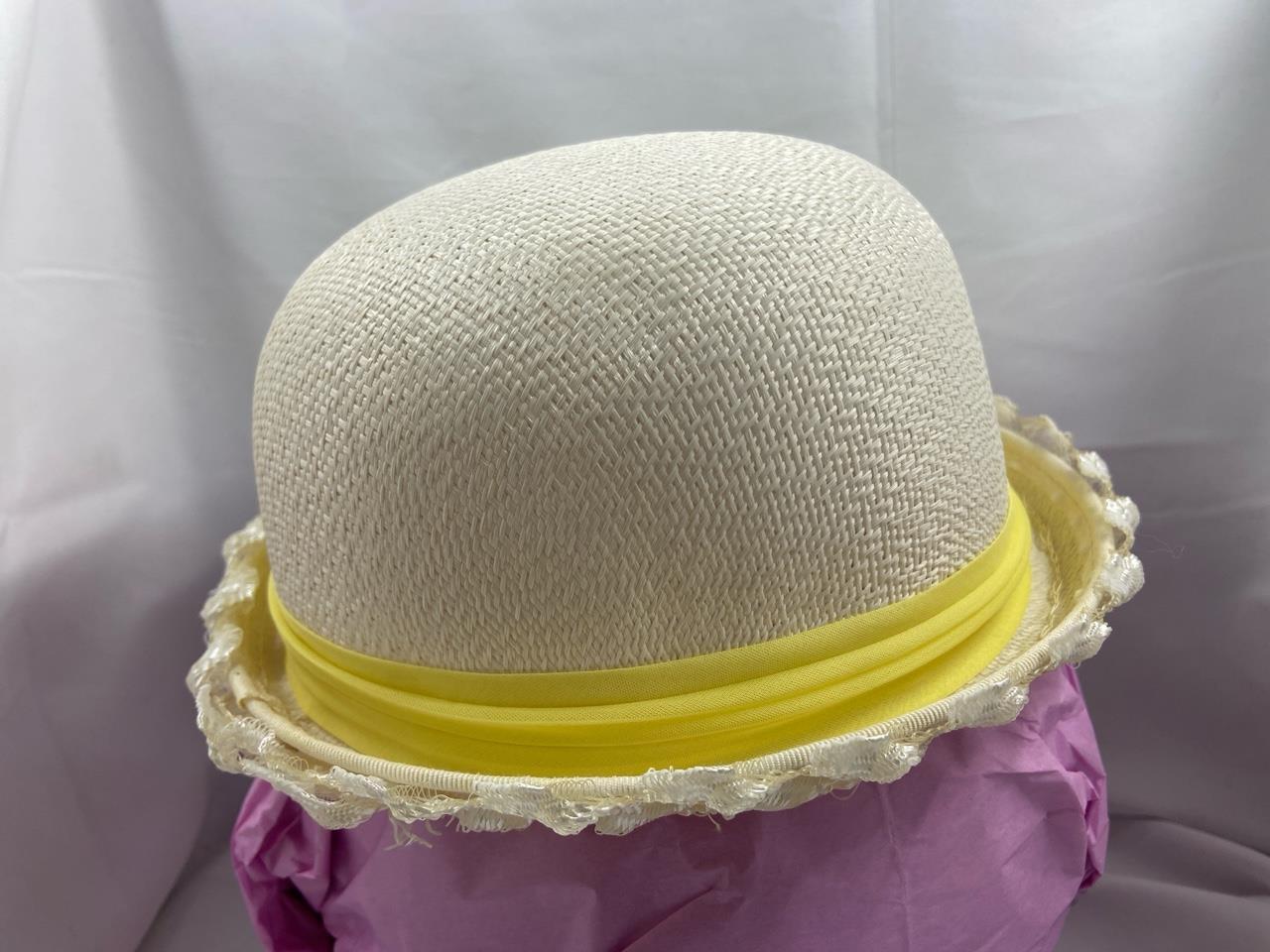 как выглядит Vintage Off White Derby Style Ladies Womens Hat Yellow Sash With Roses фото