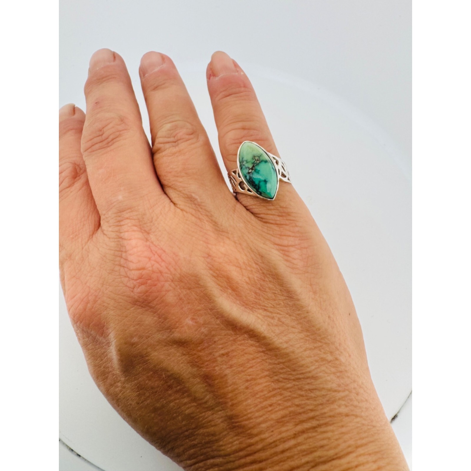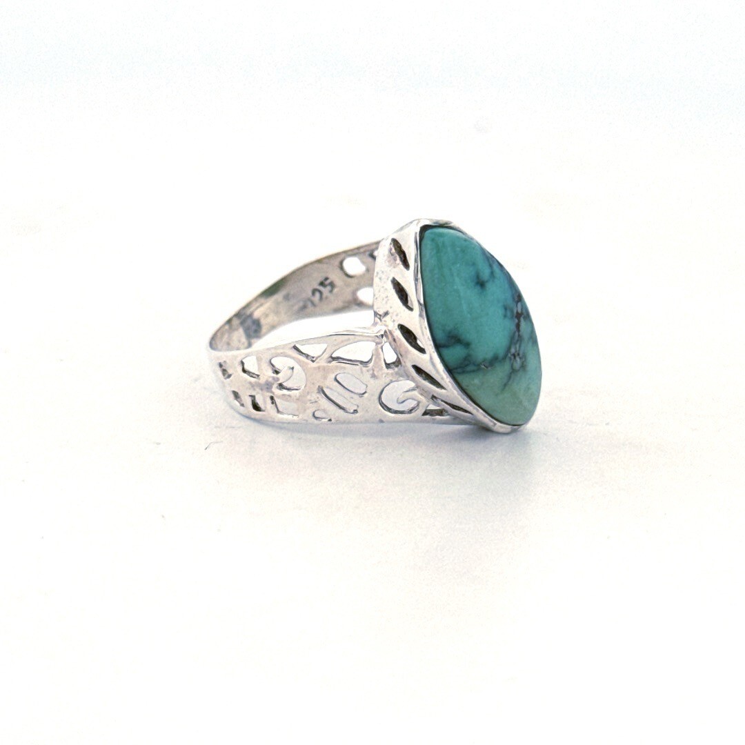 Brand New Sterling Silver 925 Filigree Band Marquise Cut Turquoise Women's Ring
