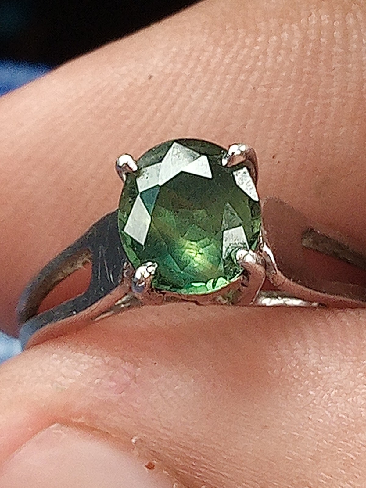 как выглядит Vtg 925 Ring With "Medium Dark Green Gemstone Oval Cut" Size 6.75 фото