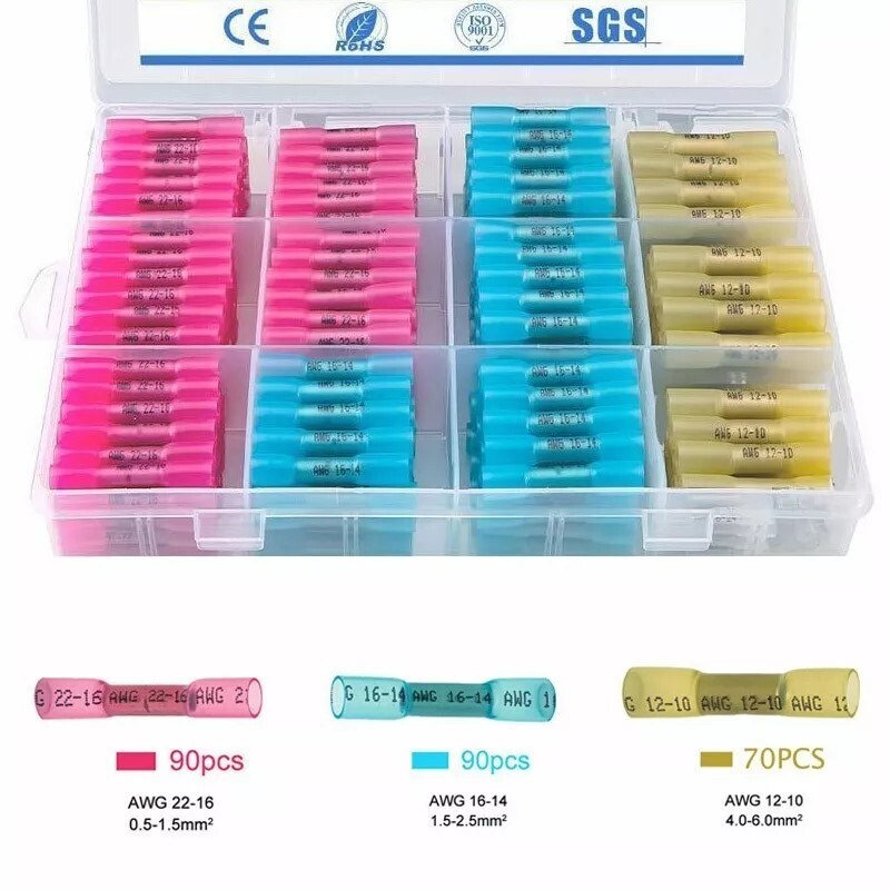 200x Waterproof Heat Shrink Butt Wire Splice Connectors Seal Crimp Terminals kit