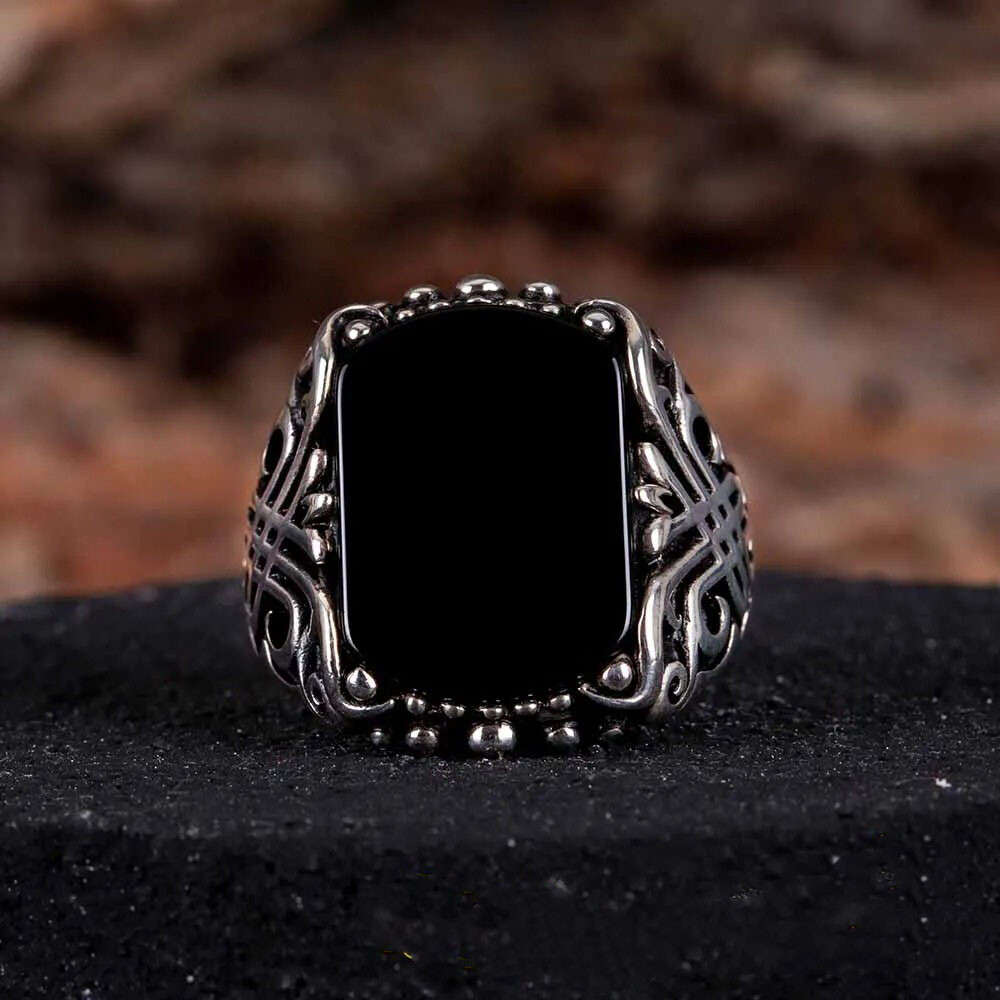 Solid 925 Sterling Silver Handmade Black Onyx Statement Anniversary Ring