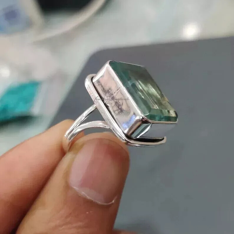 как выглядит Handmade Aquamarine Gemstone 925 Sterling Silver Statement Ring All Size R30 фото
