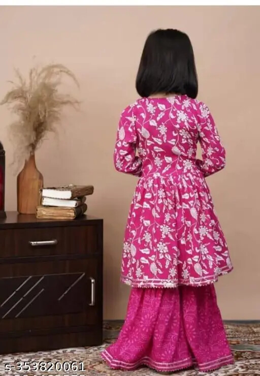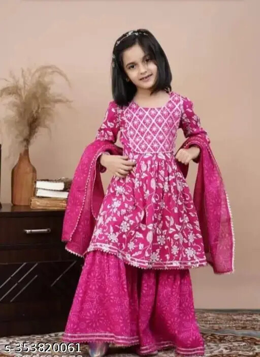 Indian Traditional Kids Kurti Sarara Printed with Dupatta set for Girls