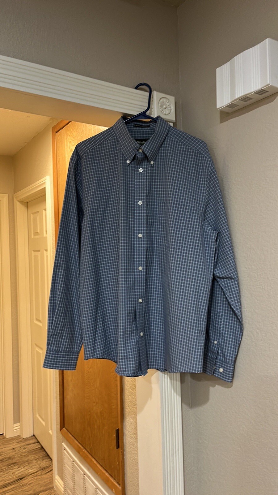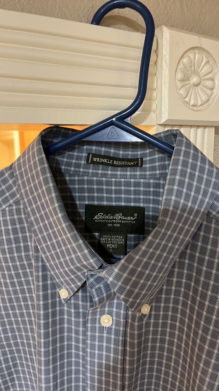 Eddie Bauer Wrinkle Resistant Mens Large Blue Plaid Long Sleeve Dress Shirt.