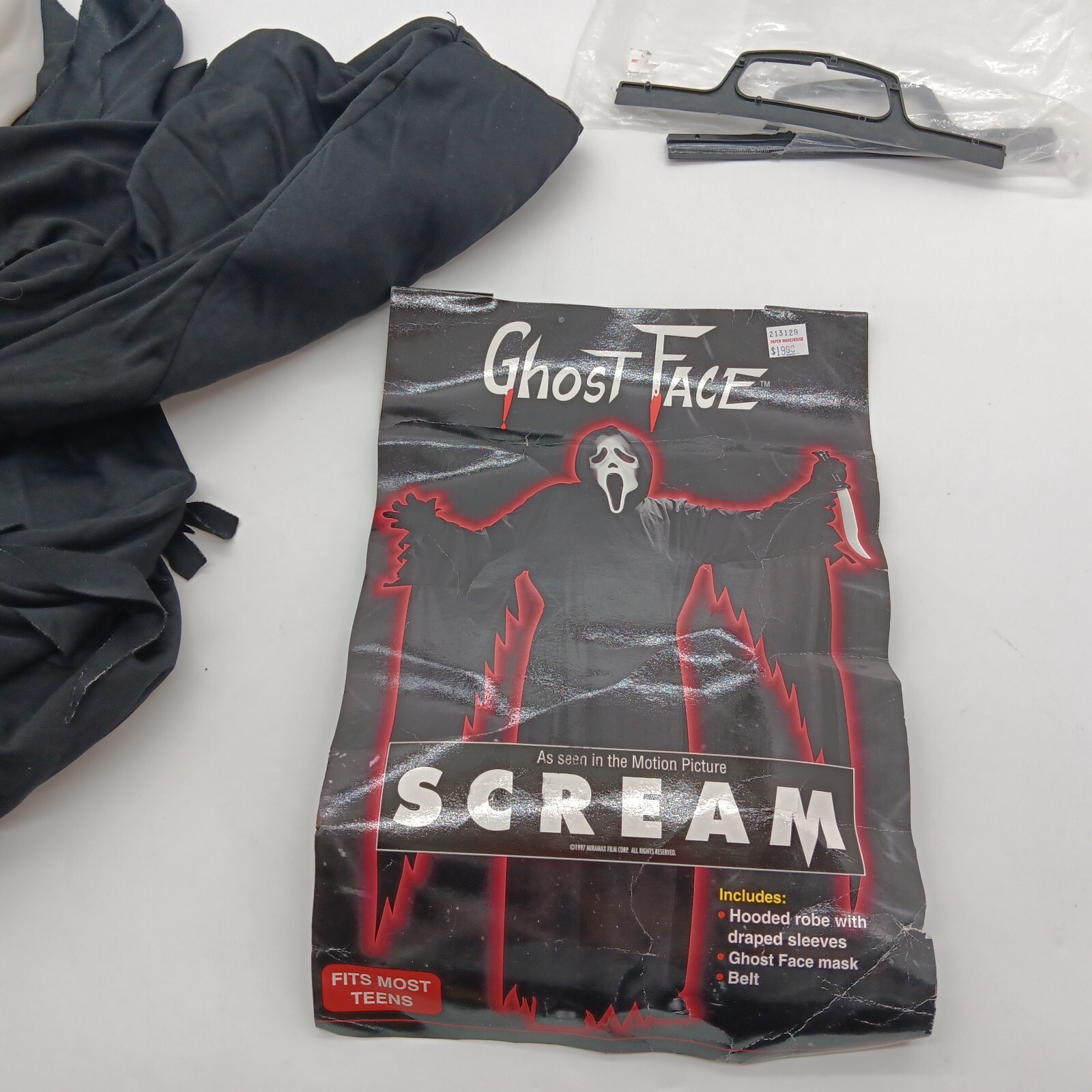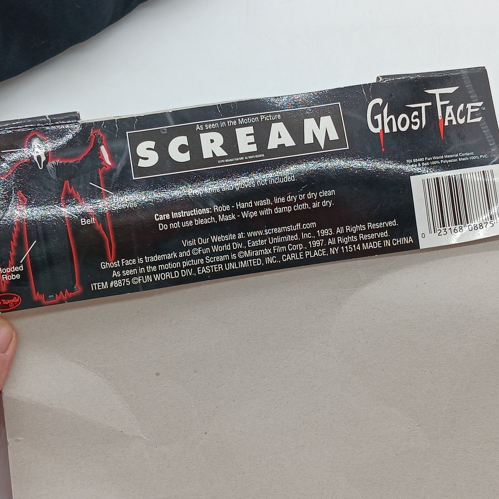 1997 Fun World Scream Ghost Face Fits Teens Costume With Robe Mask Belt