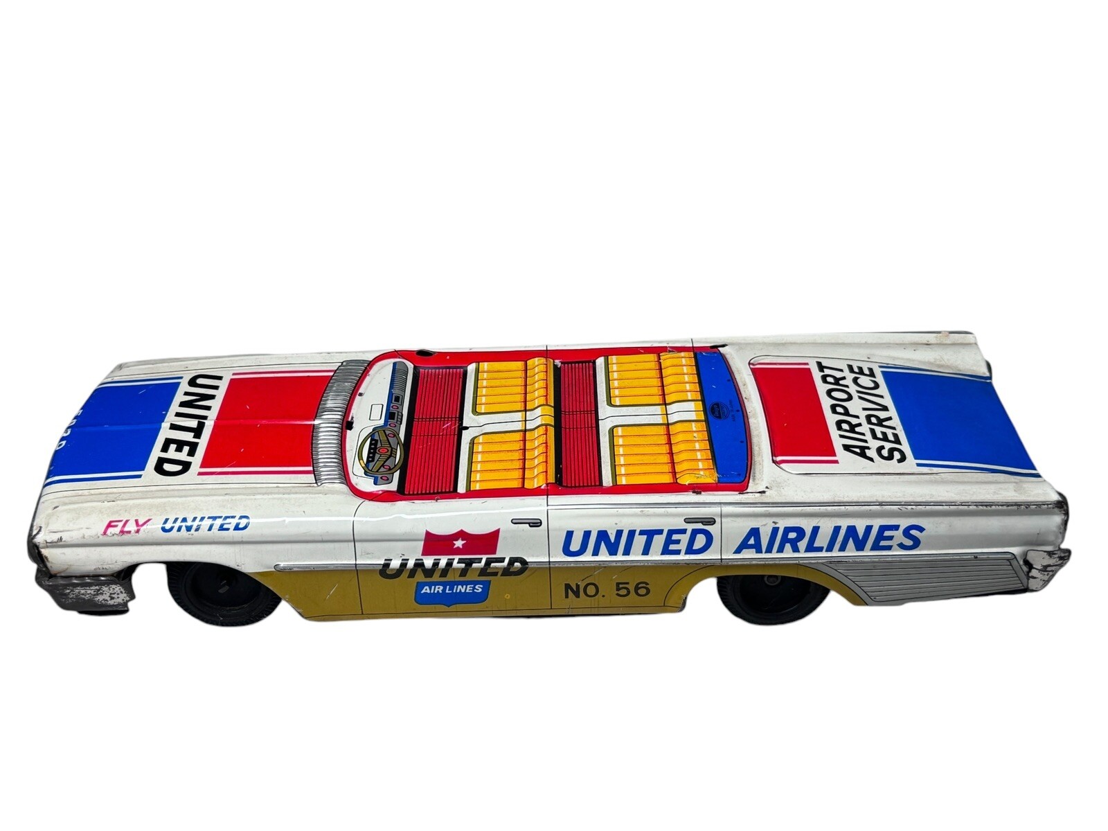 VINTAGE 1950S UNITED AIRLINES ADVERTISING FORD TOY FRICTION CAR TAIYO TOYS JAPAN