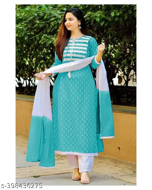 Indian Traditional Rayon Kurti Pant With Dupatta for Women Girl