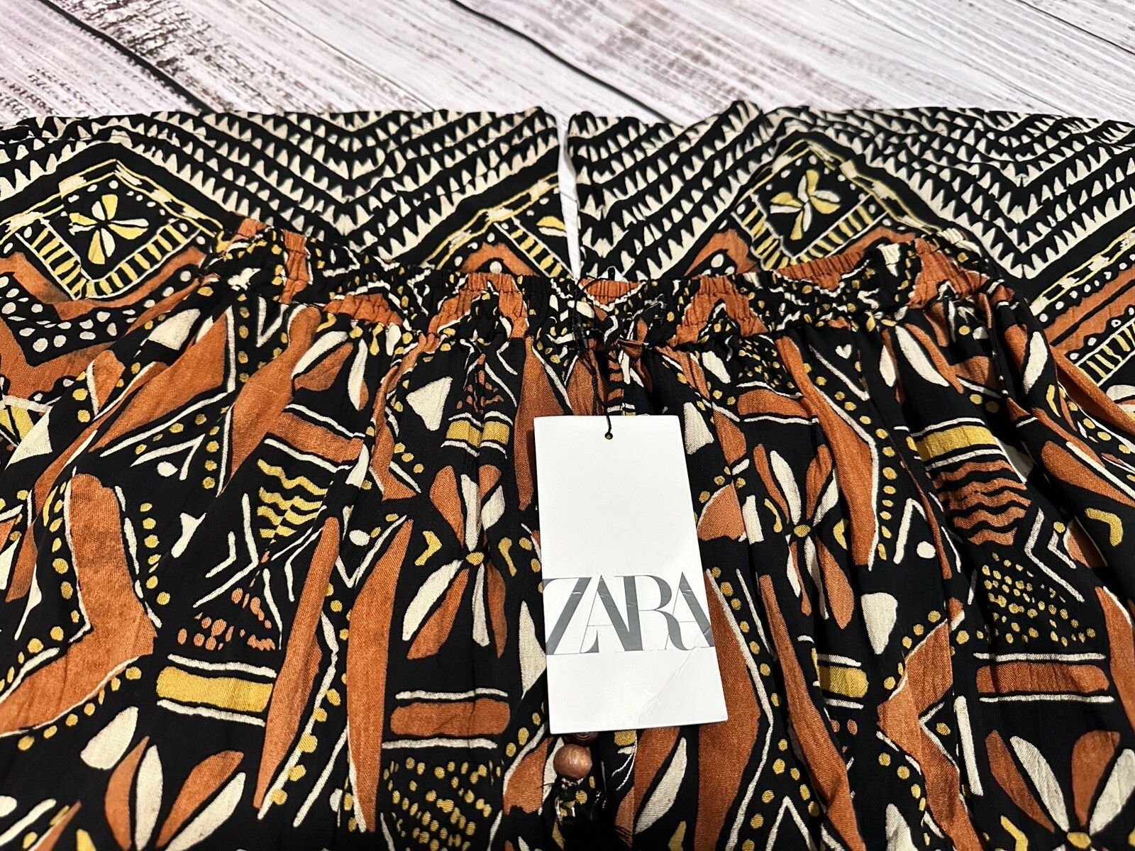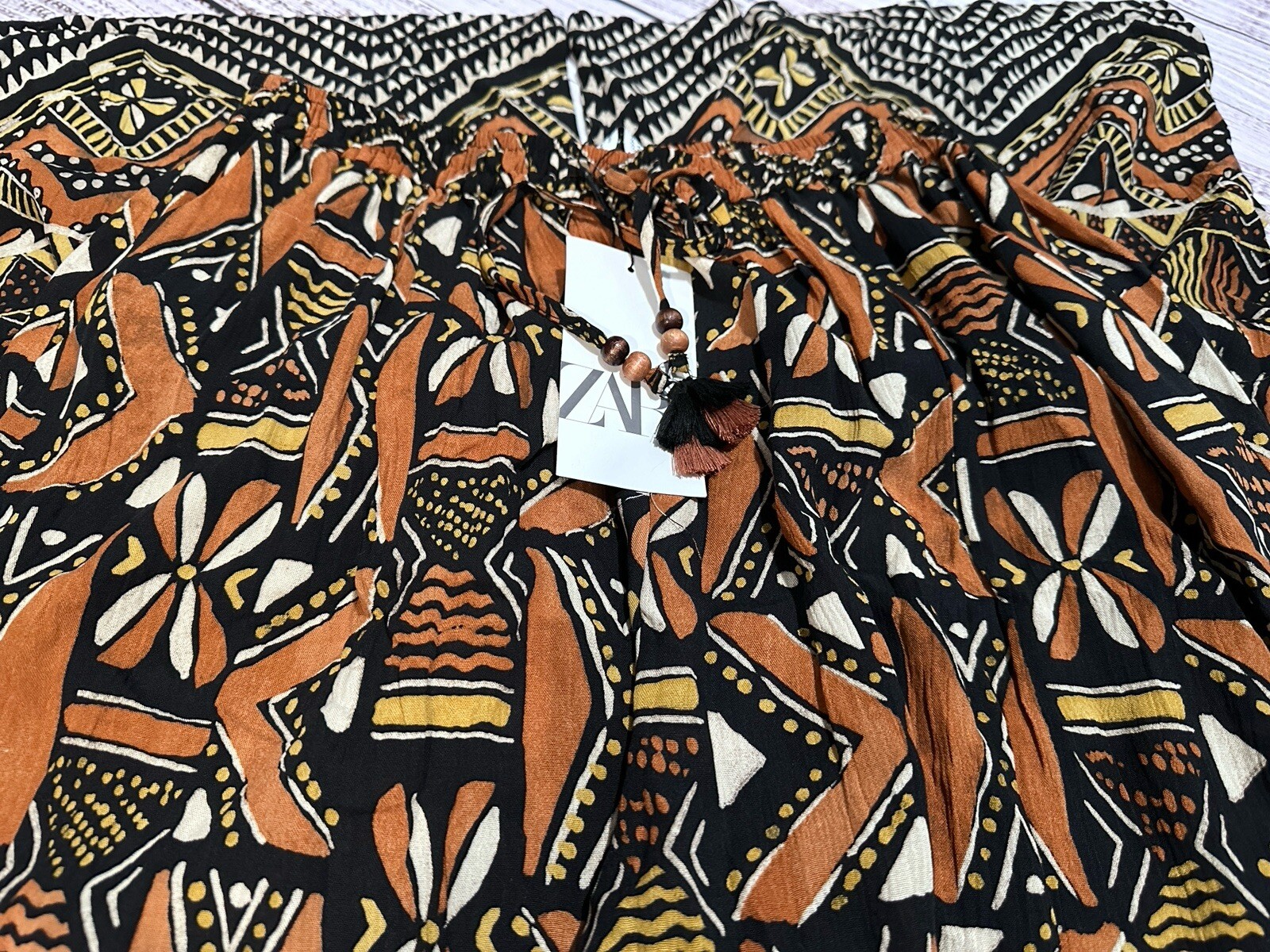 как выглядит ZARA NWT WOMAN SS24 PRINTED WIDE LEG HIGH-WAISTED PANTS MULTICOLORED 2587/055 фото