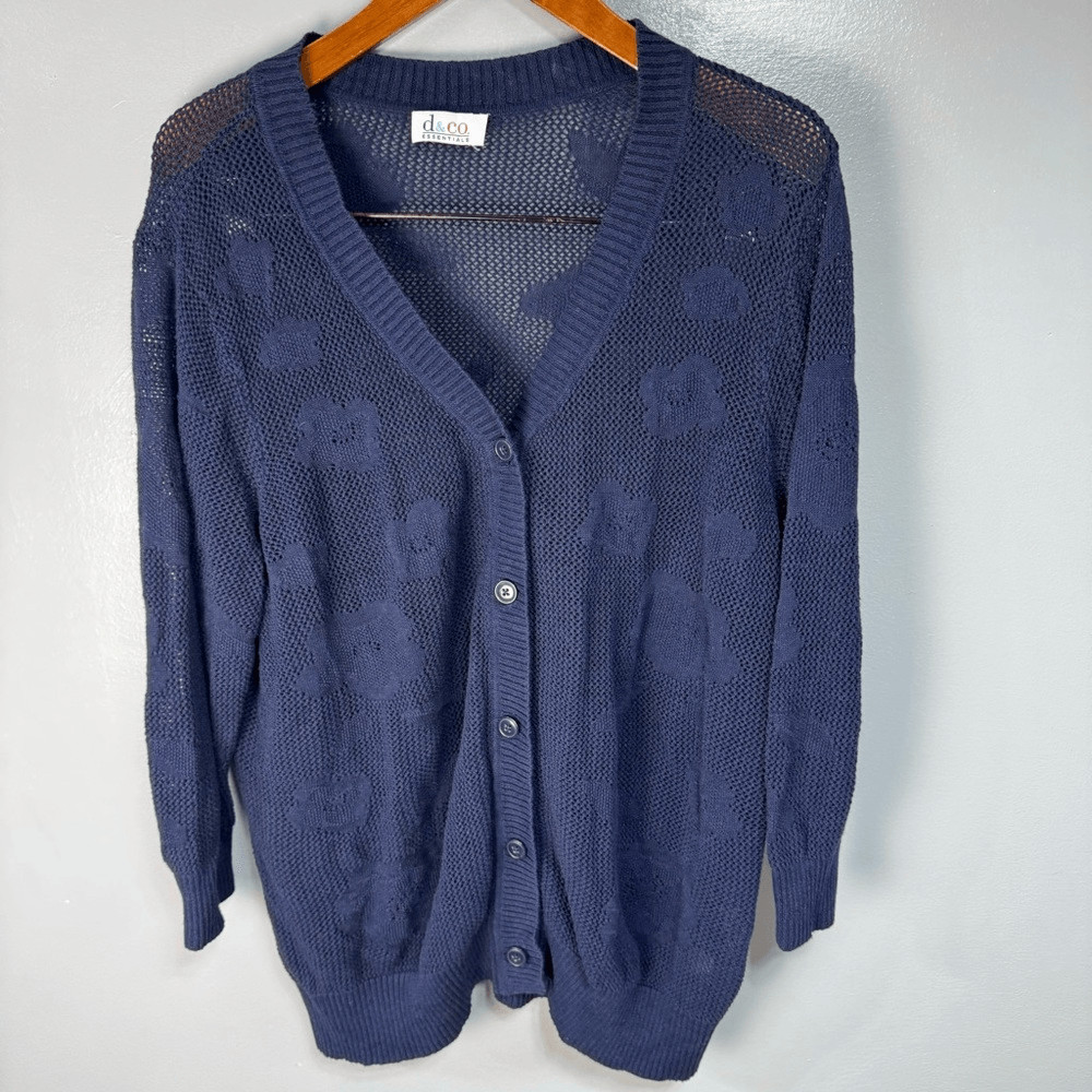 Denim Co. Women s Cardigan Sweater sz L Open Knit E695