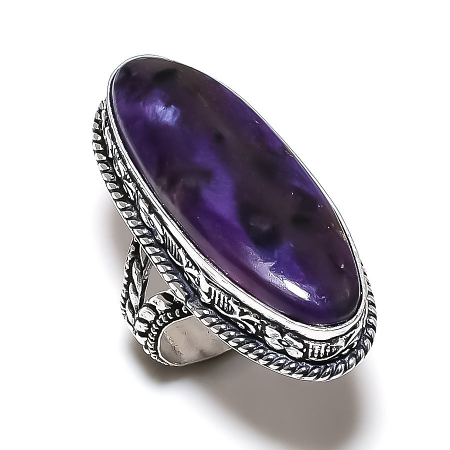 Natural Russian Charoite Gemstone 925 Sterling Silver Ring Size 9.5 Gift R618