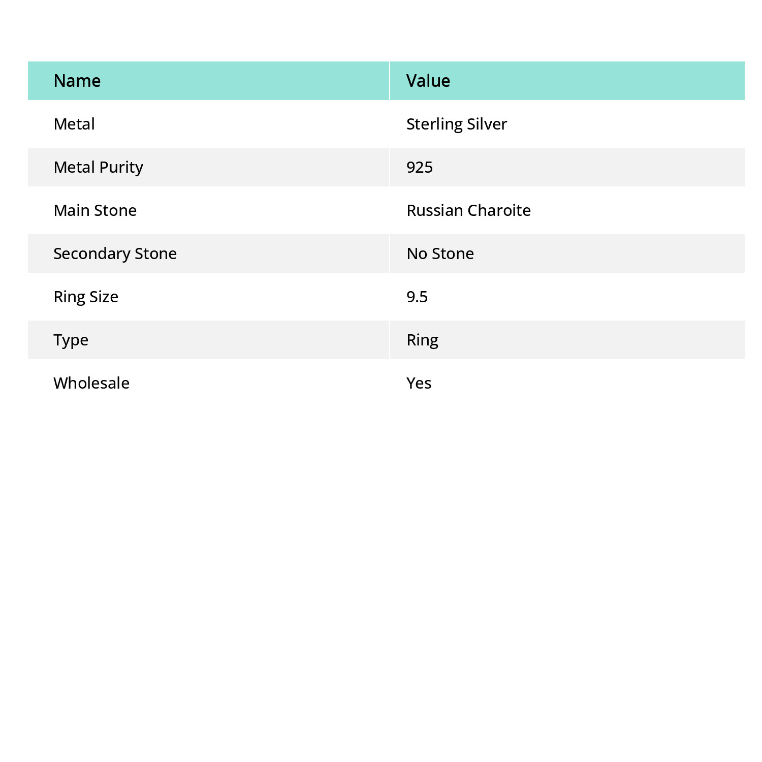 как выглядит Natural Russian Charoite Gemstone 925 Sterling Silver Ring Size 9.5 Gift R618 фото
