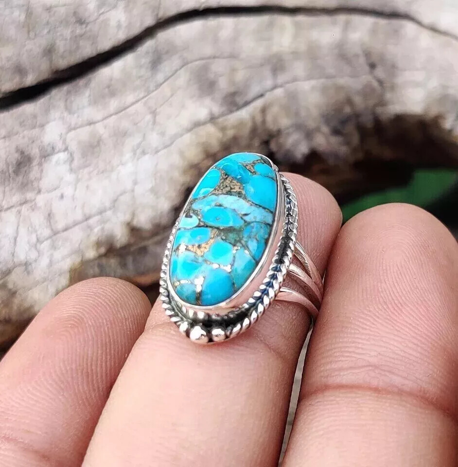 Blue Copper Turquoise Ring Handmade 925 Sterling Silver Boho Ring All Size R147