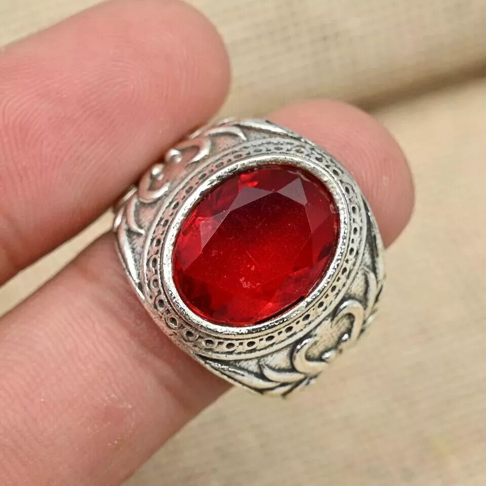 как выглядит Garnet Gemstone 925 Sterling Silver Bohemian Designer Mens Ring All Size D40 фото