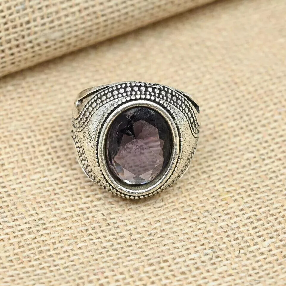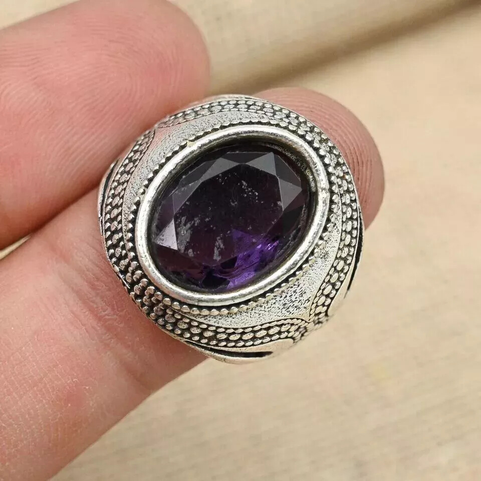 Statement Amethyst Gemstone Ring 925 Sterling Silver Men's Ring All Size D62