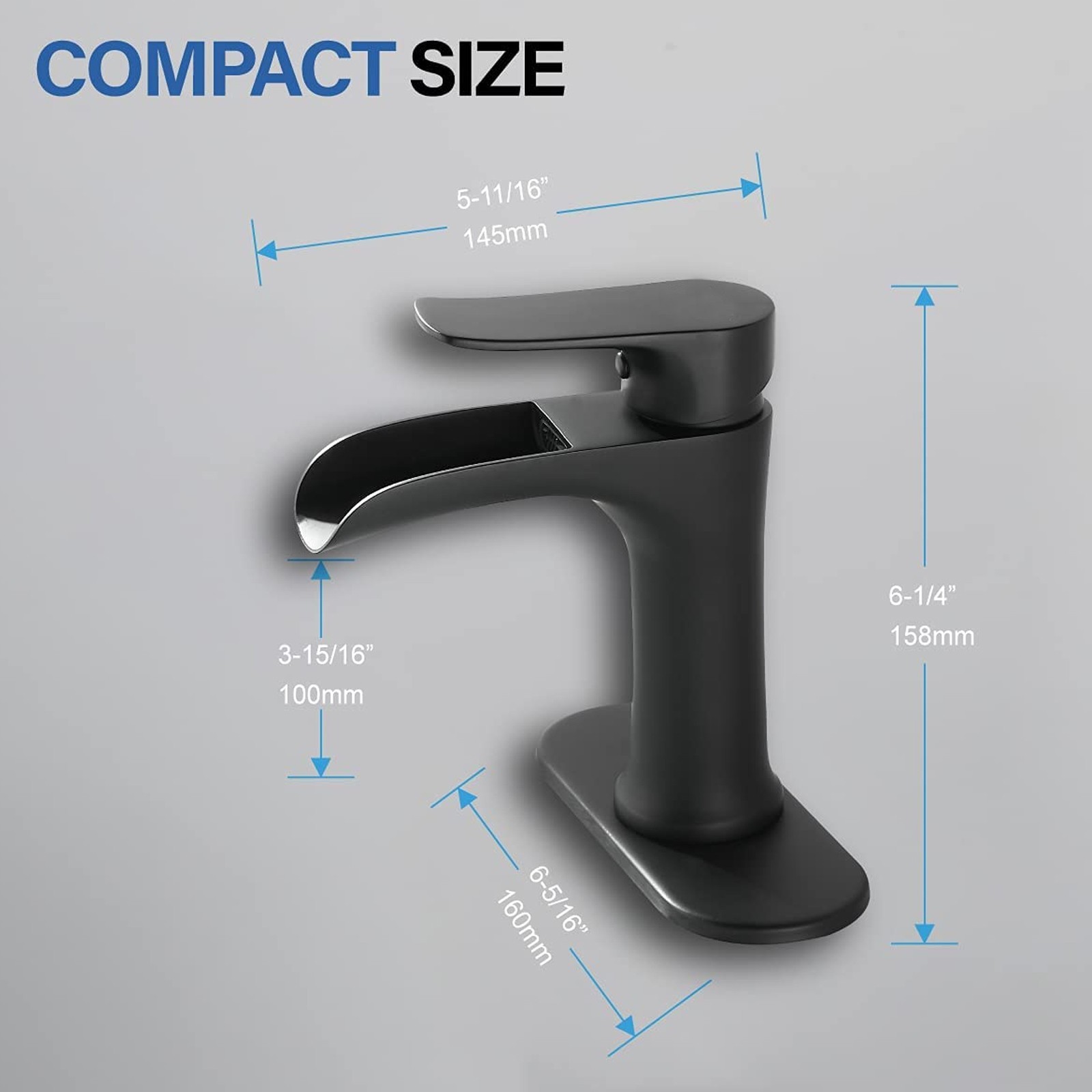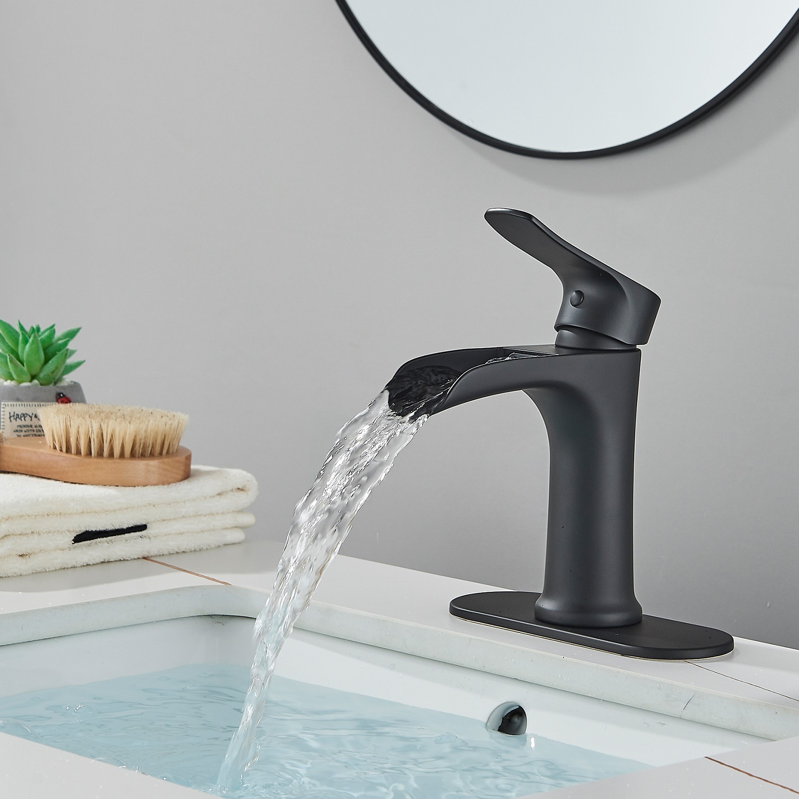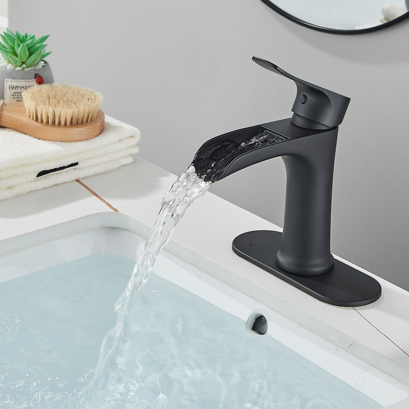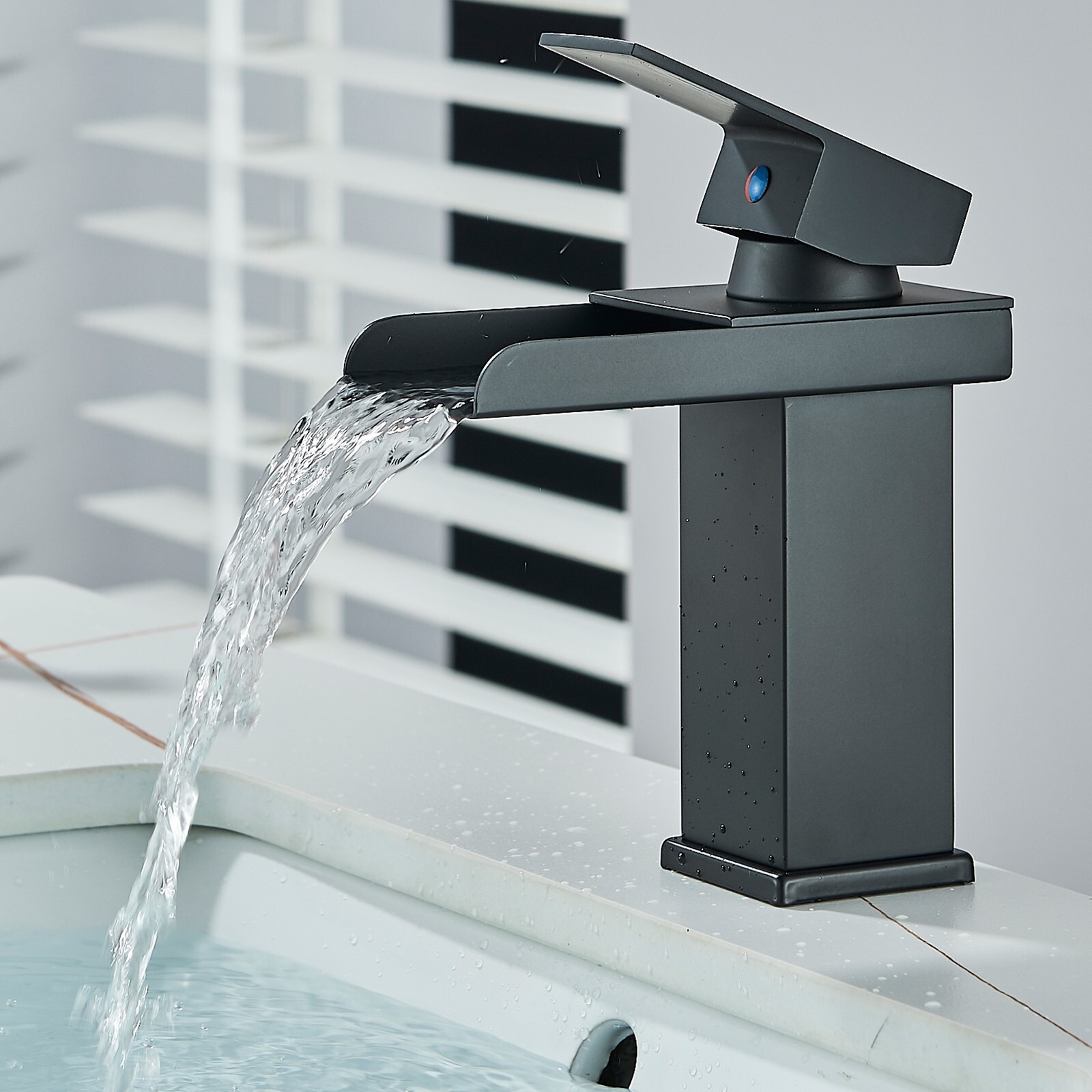 Matte Black Waterfall Bathroom Faucet Sink Vanity Mixer Taps Single Handle 1Hole